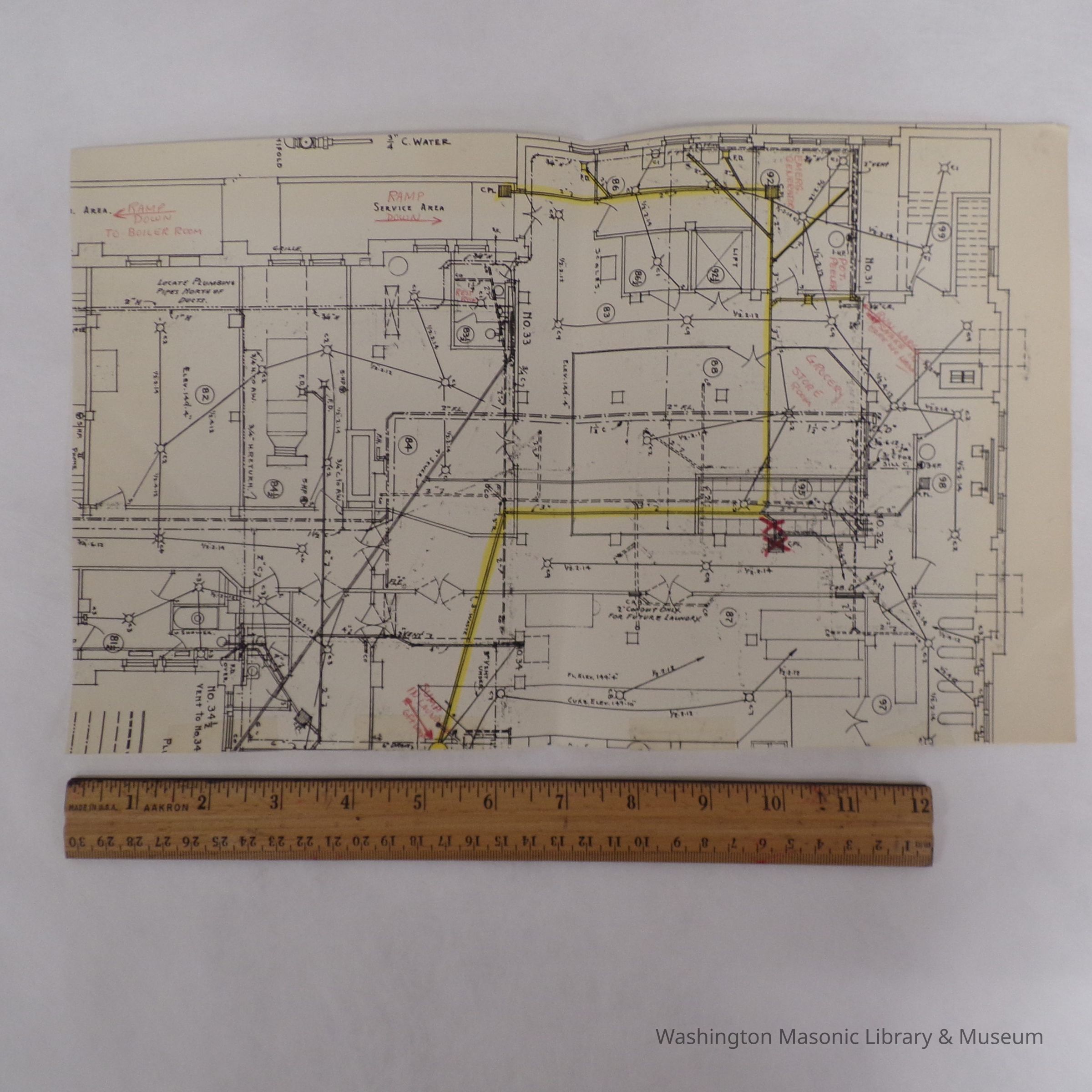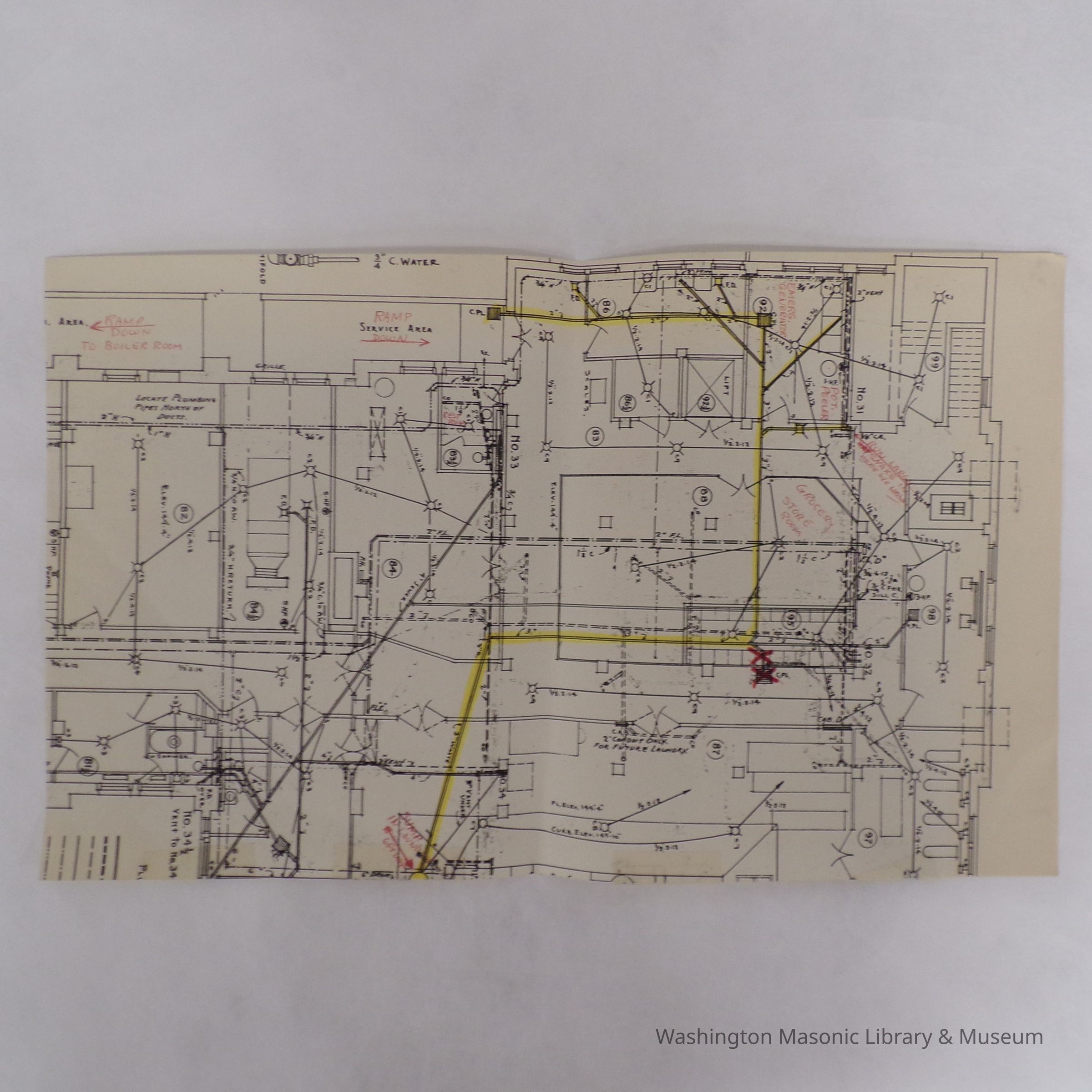Building Plans: Building Plans of MRC boiler room (unknown era). Highlighted section implies updates were being discussed for the building.Collection