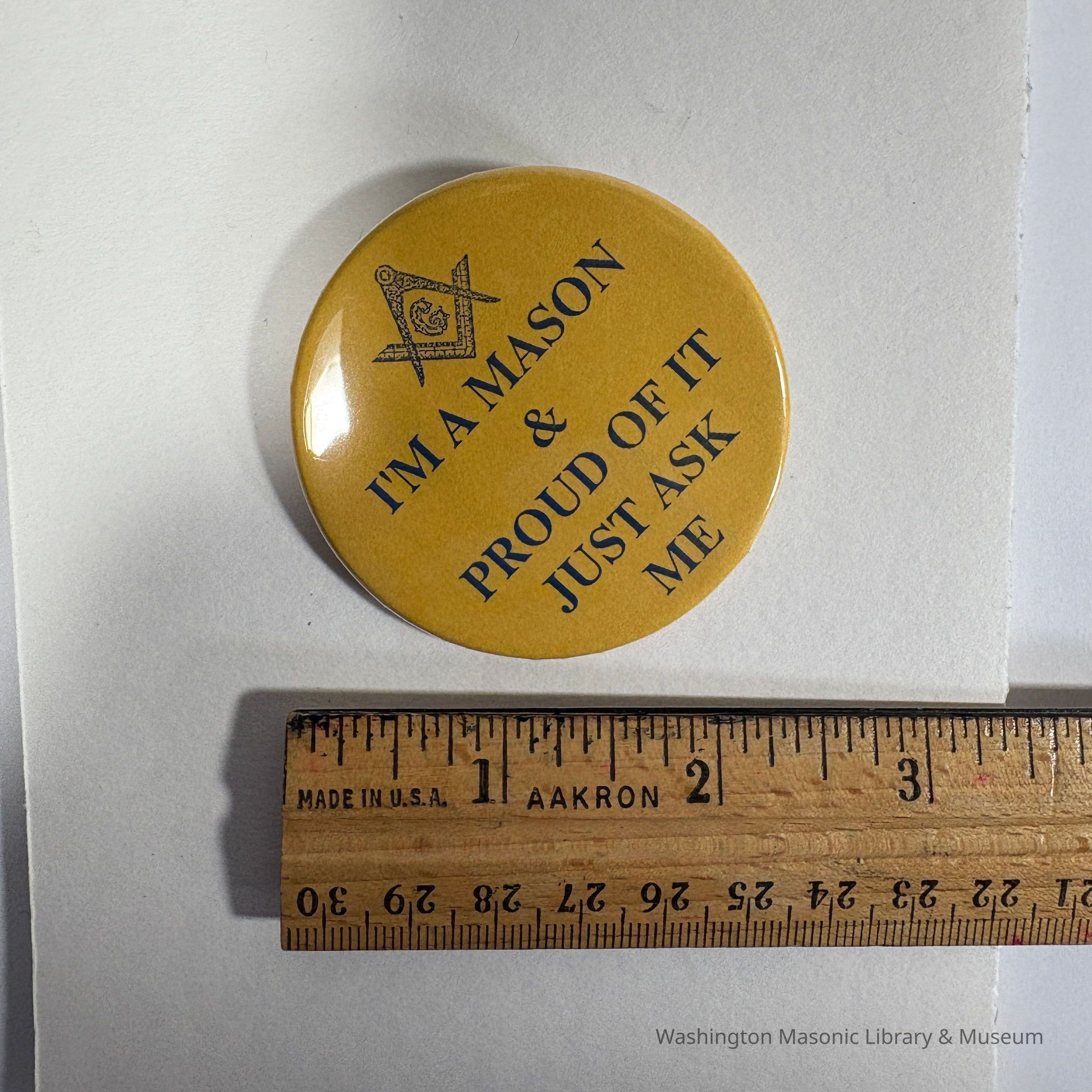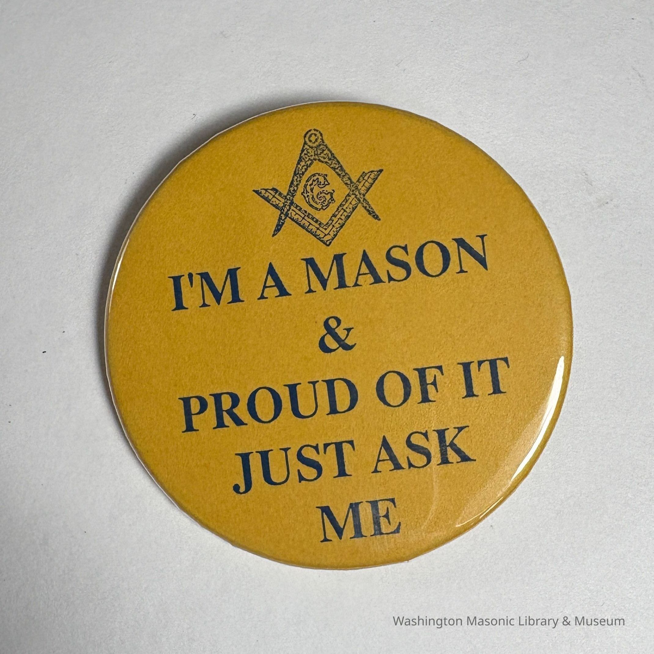 Button: "I'm a Mason and Proud of it Just Ask Me" (c. 1995)Entry/Object ID