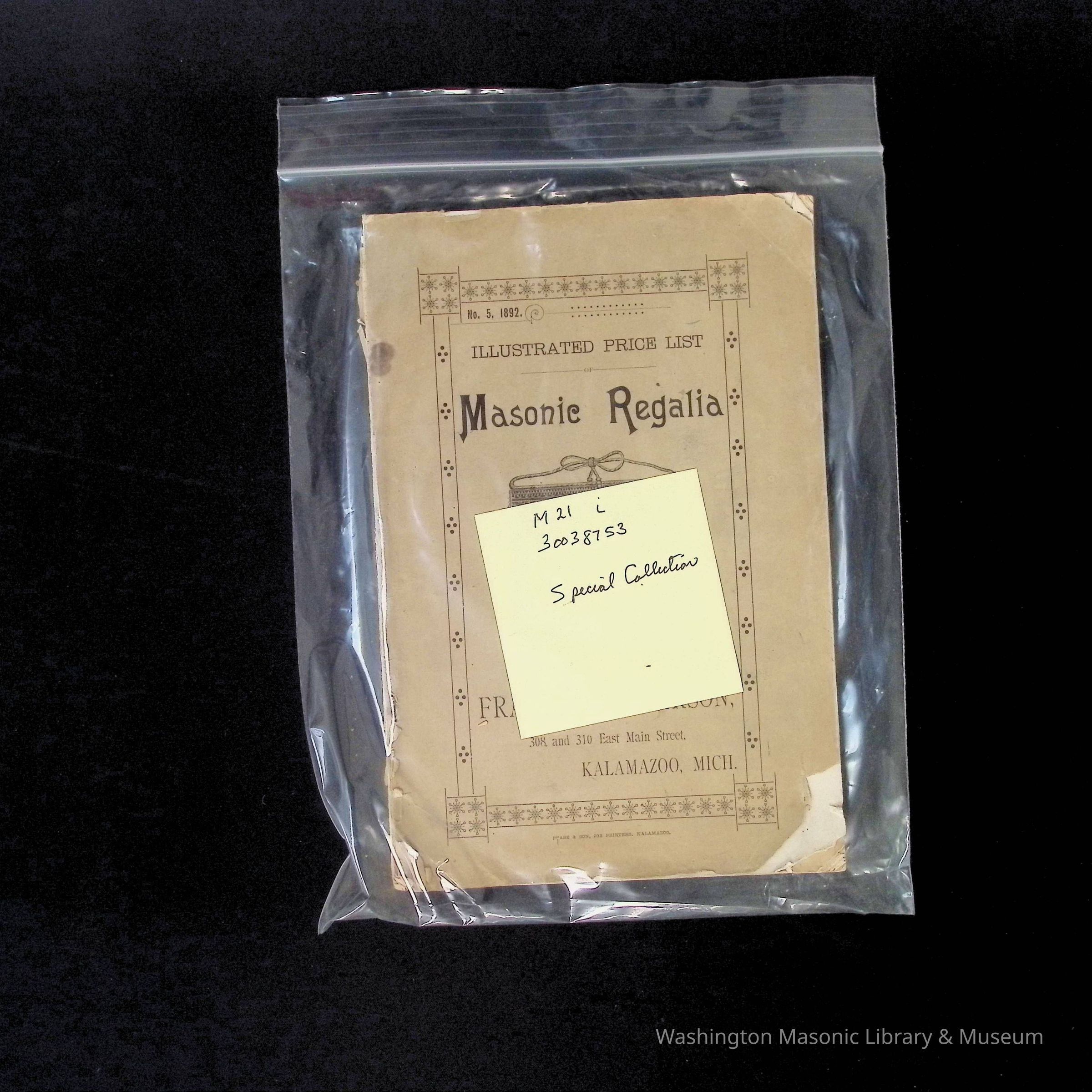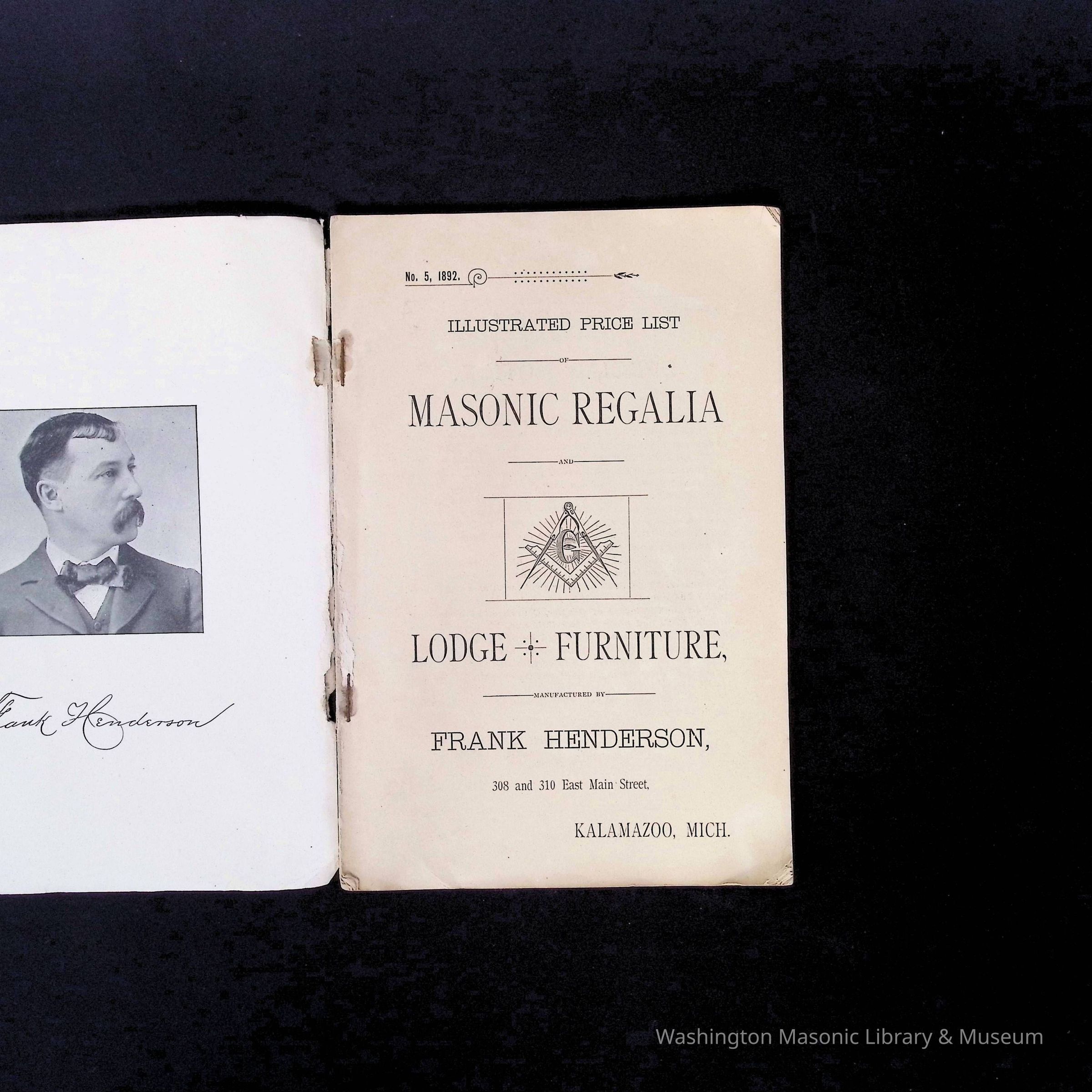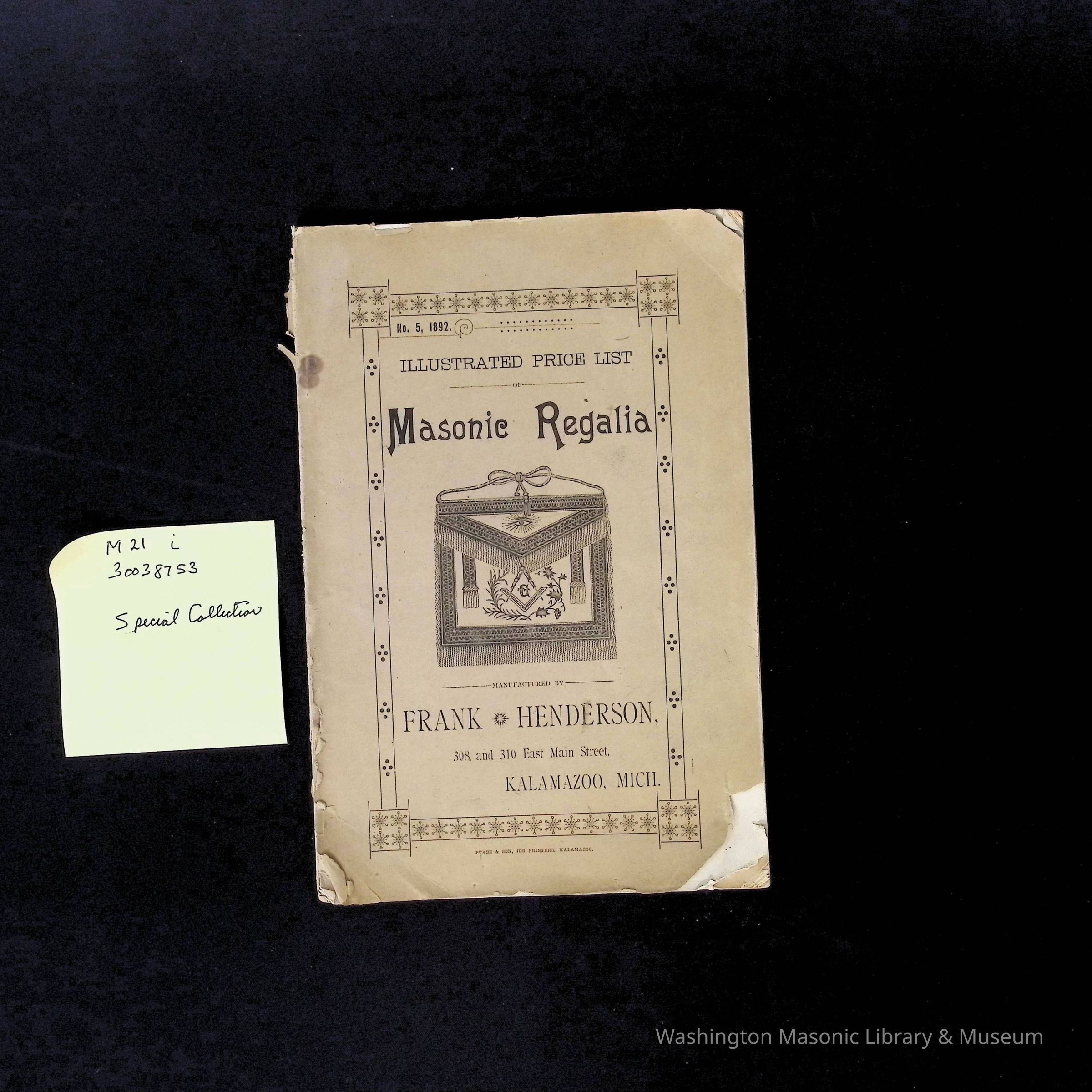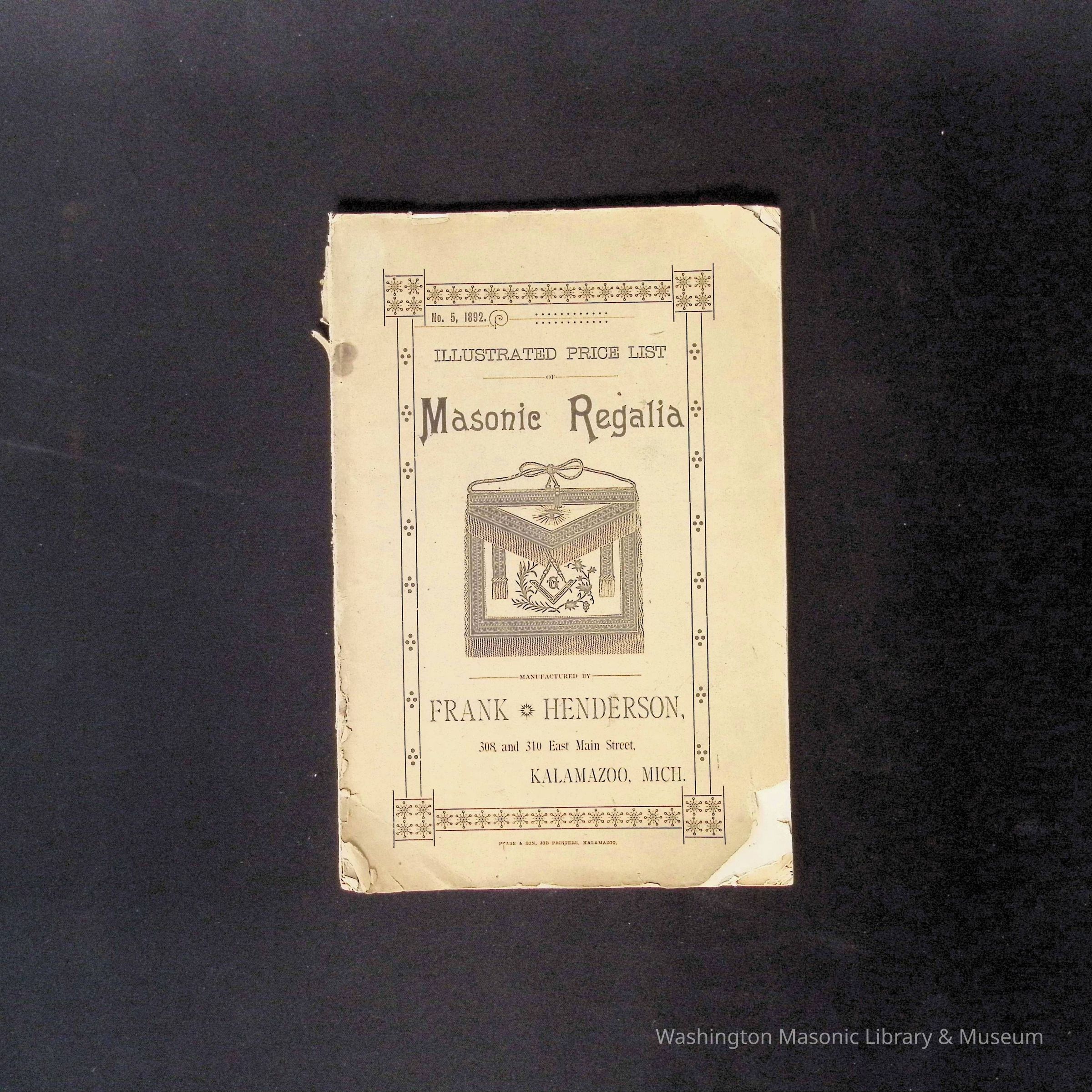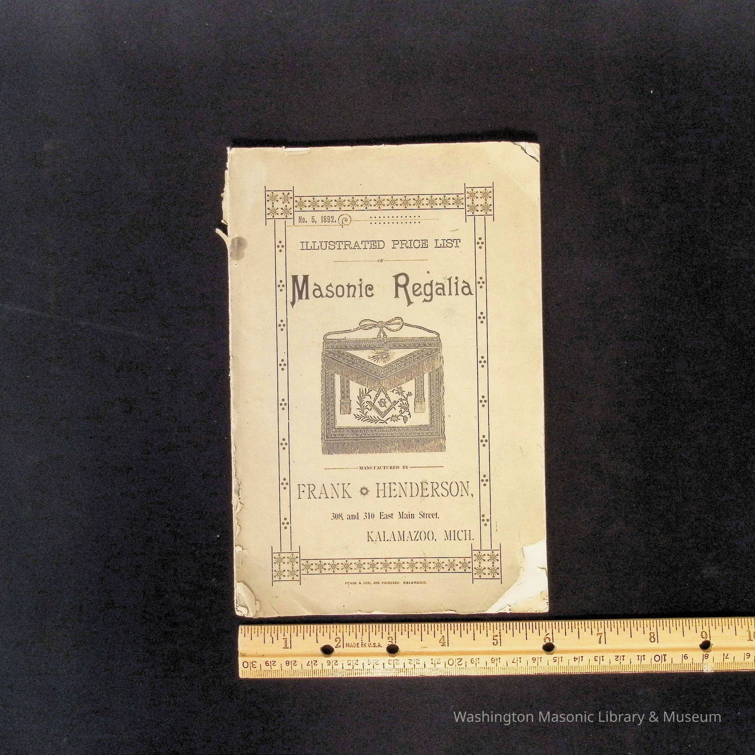 Catalog: Illustrated Price List Masonic Regalia, Frank Henderson. Kalamazoo, Michigan (1892)Collection