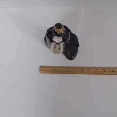 Doll is wearing black cape and gold crown with jewels, is holding the Holy Bible in outstretched hands.Collection