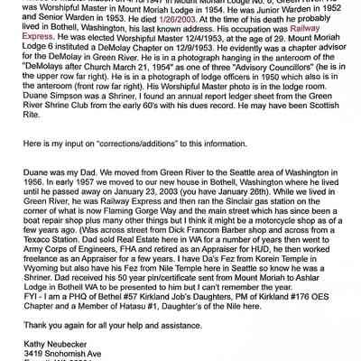 Duane Wellington SimpsonGeneral Notes