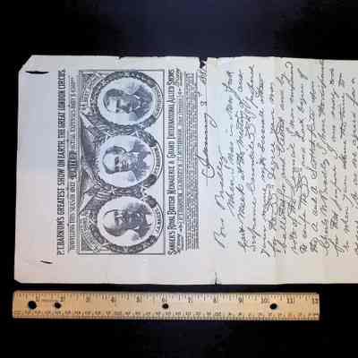 Written on stationary advertising P.T. Barnum's Greatest Show on Earth, The Great London Circus.