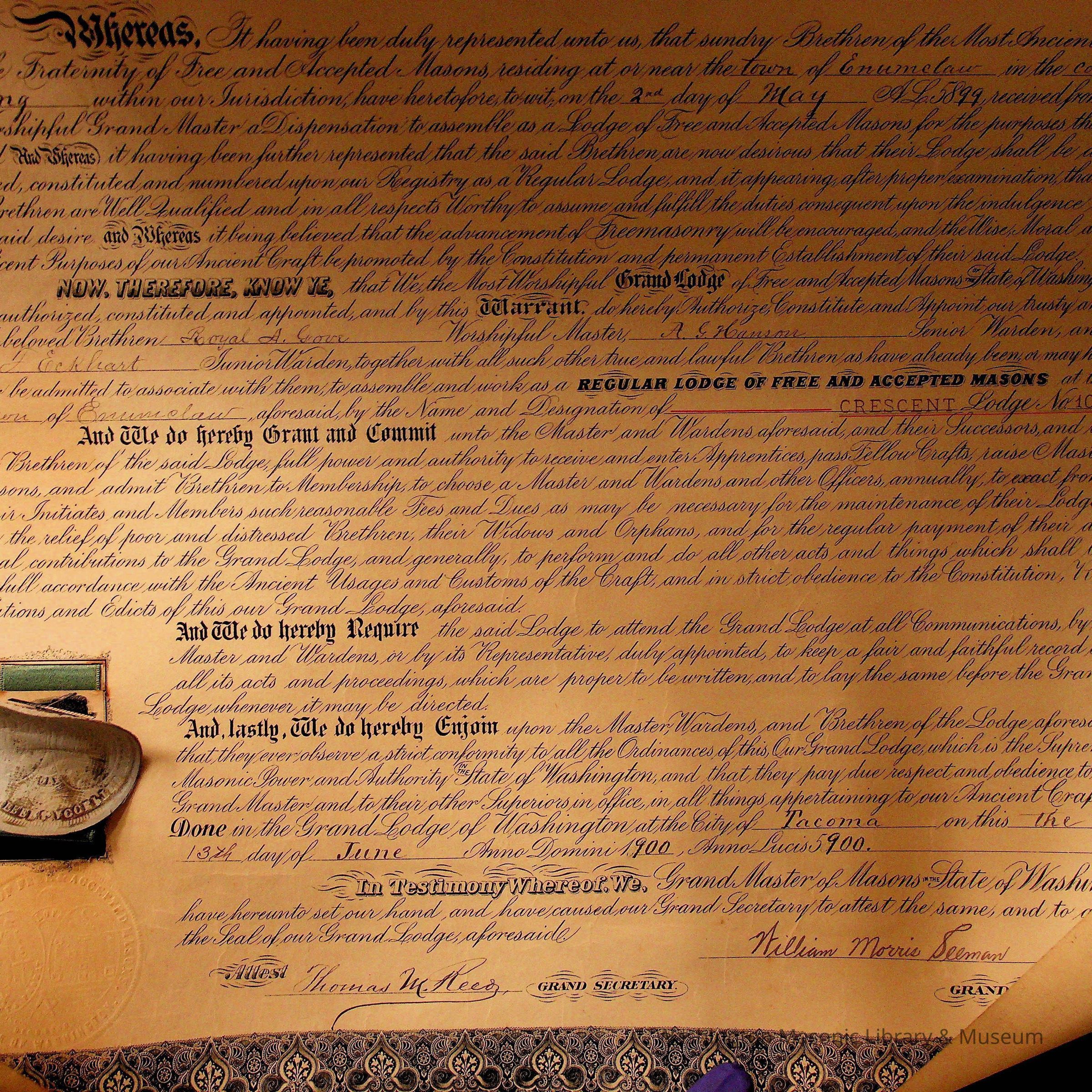 Charter: Crescent Lodge No. 109 Enumclaw, King County