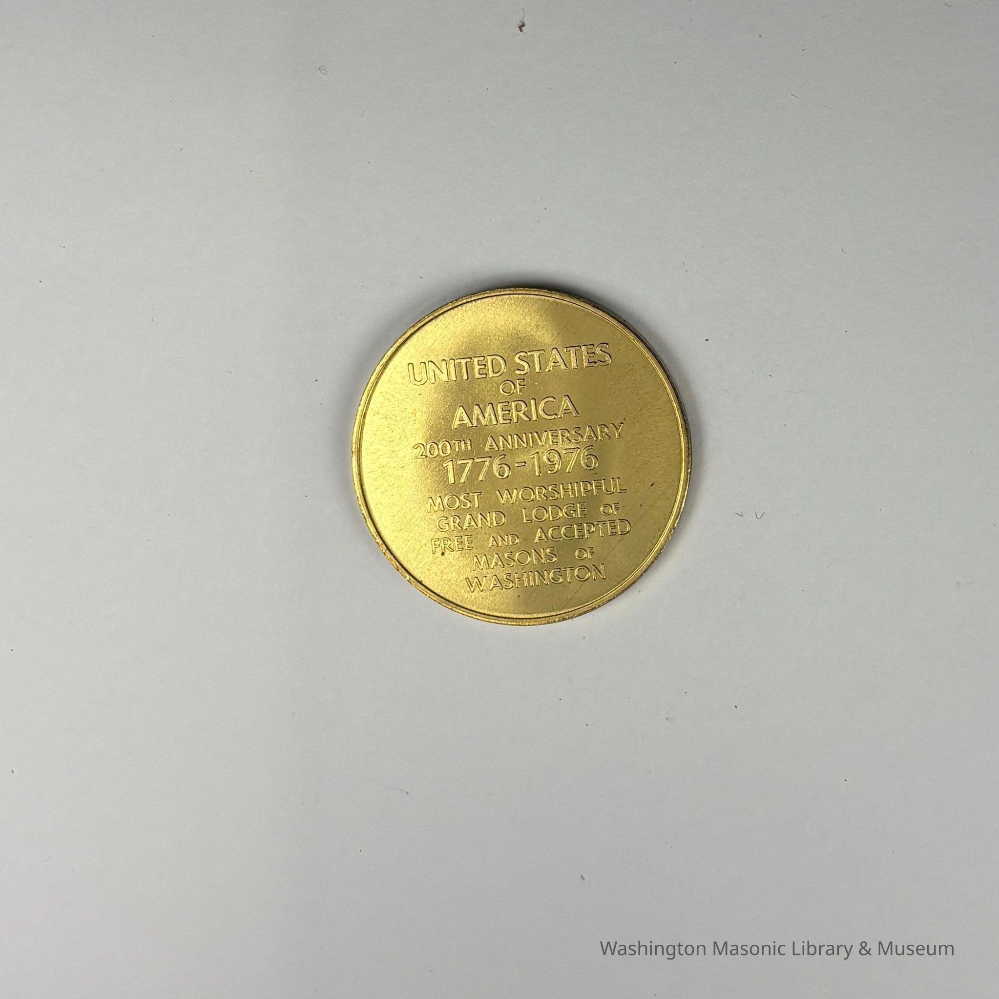 On Back Side: "United States/Of/America/200th Anniversary/ 1776-1976/Most Worshipful/Grand Lodge of/Free and Accepted/Masons of/Washington"Collection