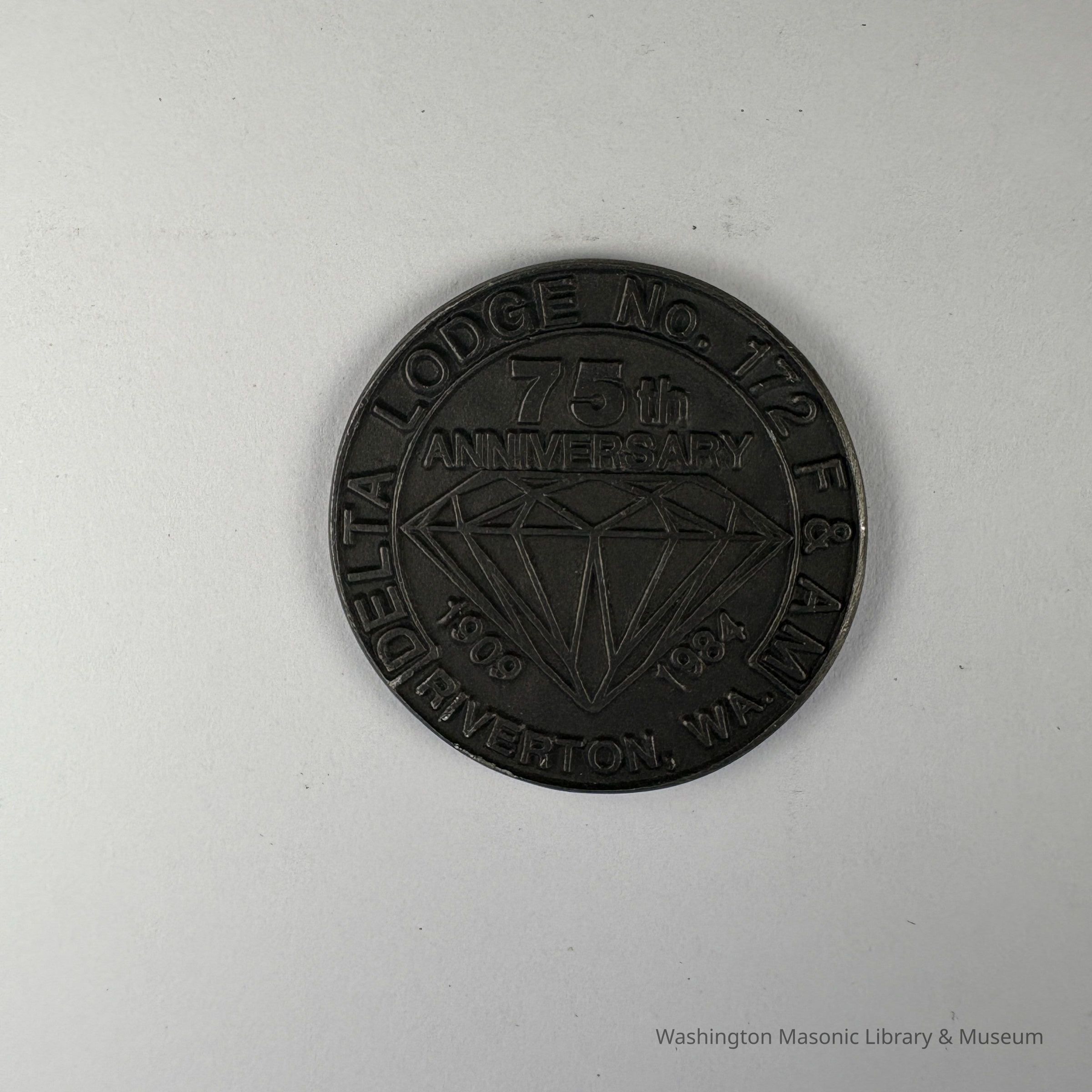 On Front Side: Diamond "Delta Lodge No. 172 F.&A.M./Riverton, WA/1901/1984/75th Anniversary"