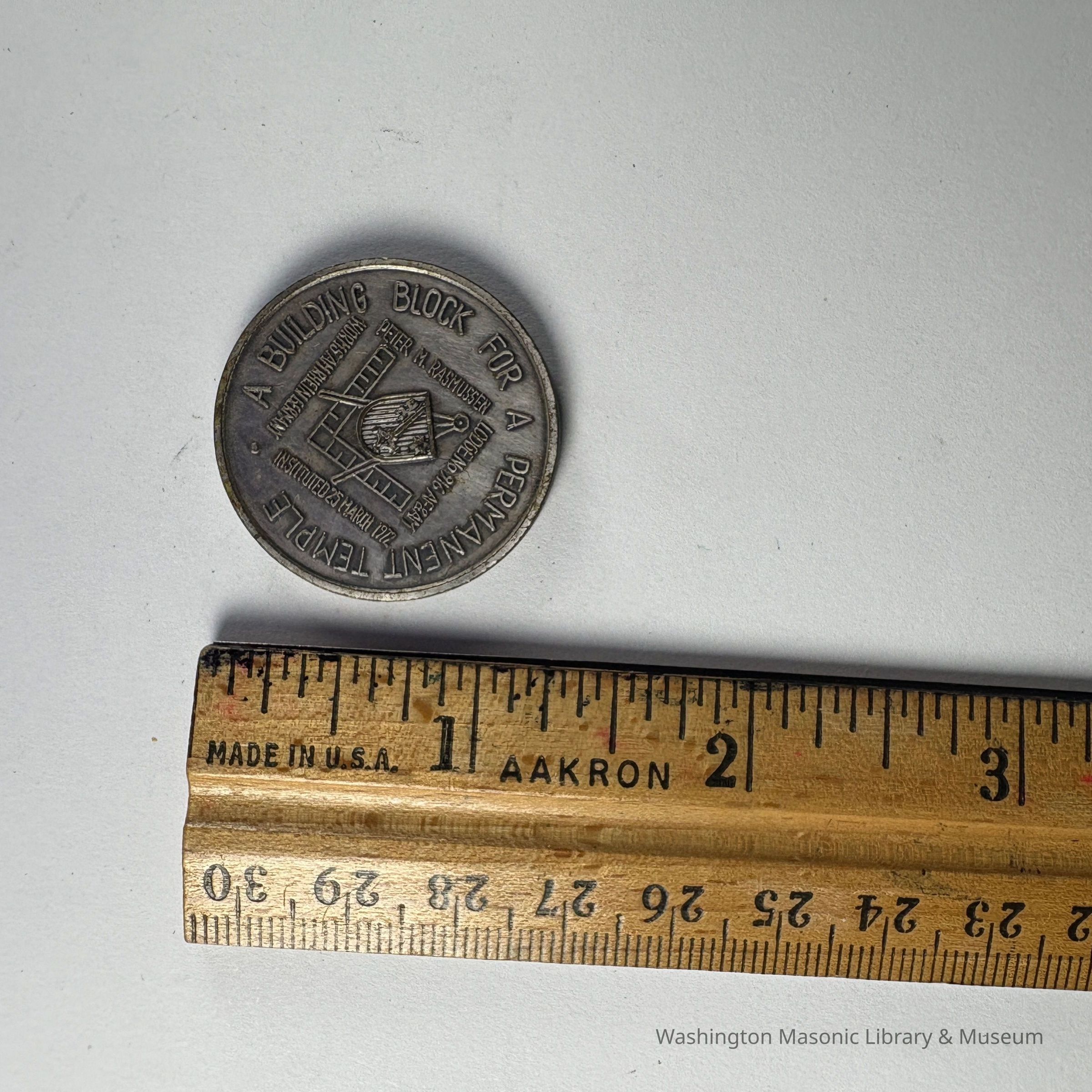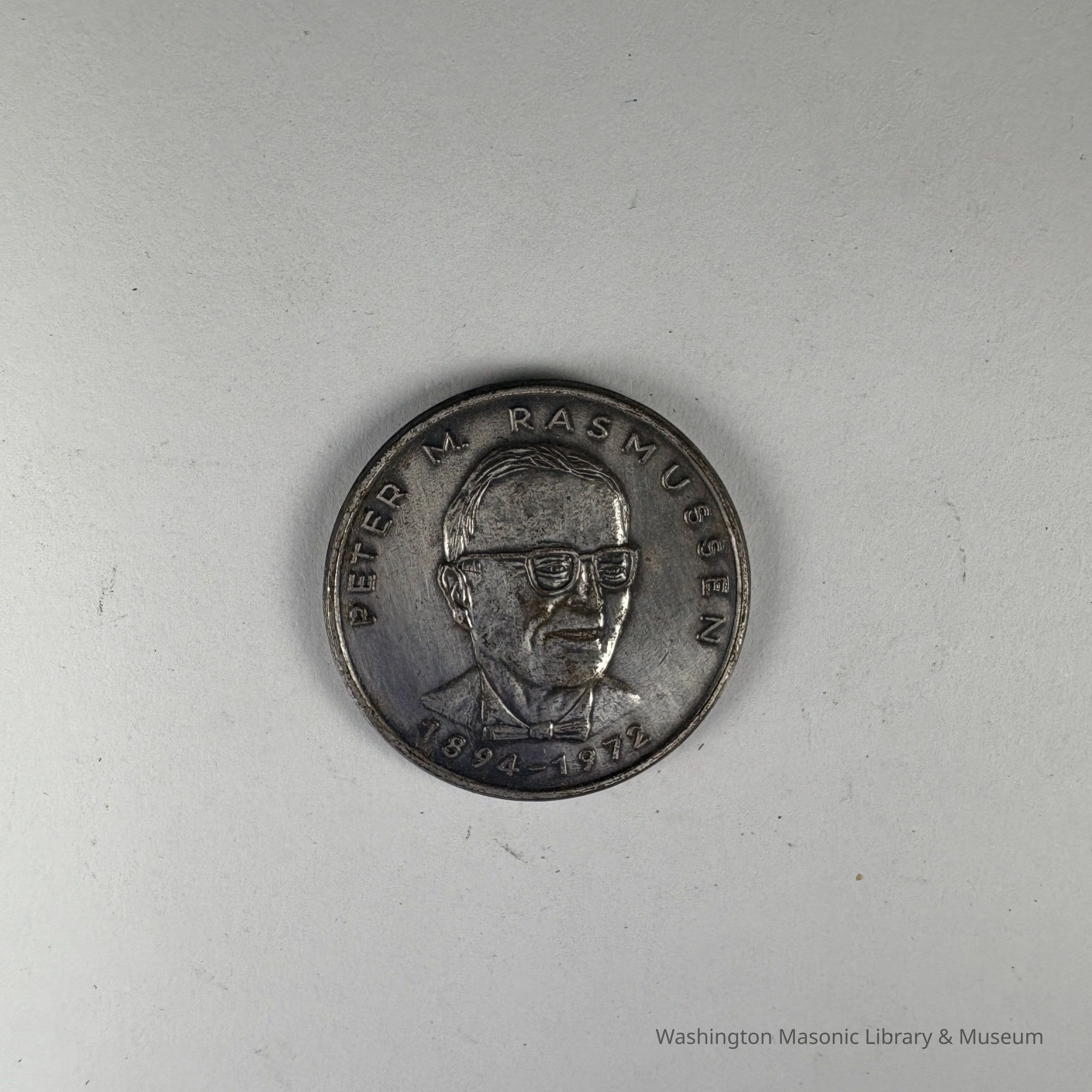 Coin: Silver. Peter M. Rasmussen Lodge No. 916, American Canadian Grand Lodge. Belonged to PGM James O.Wood (1976).Entry/Object ID