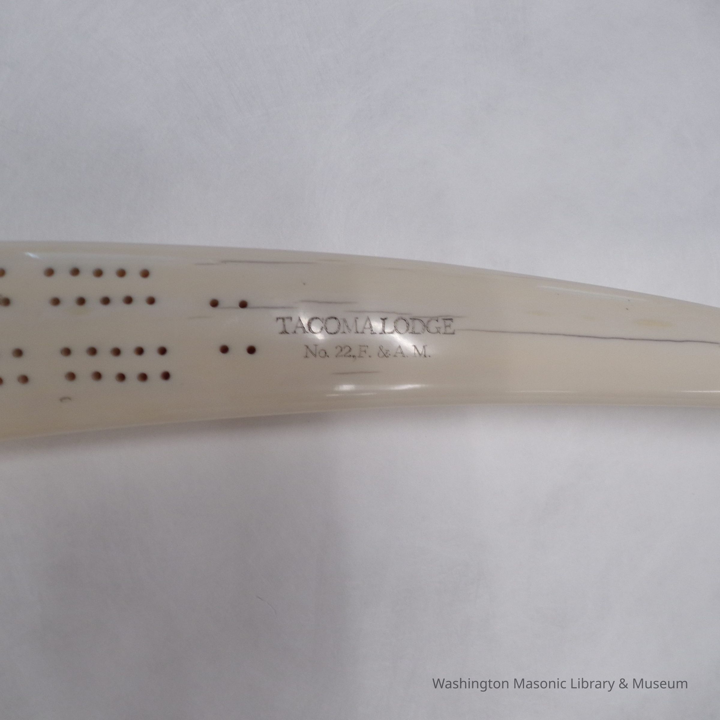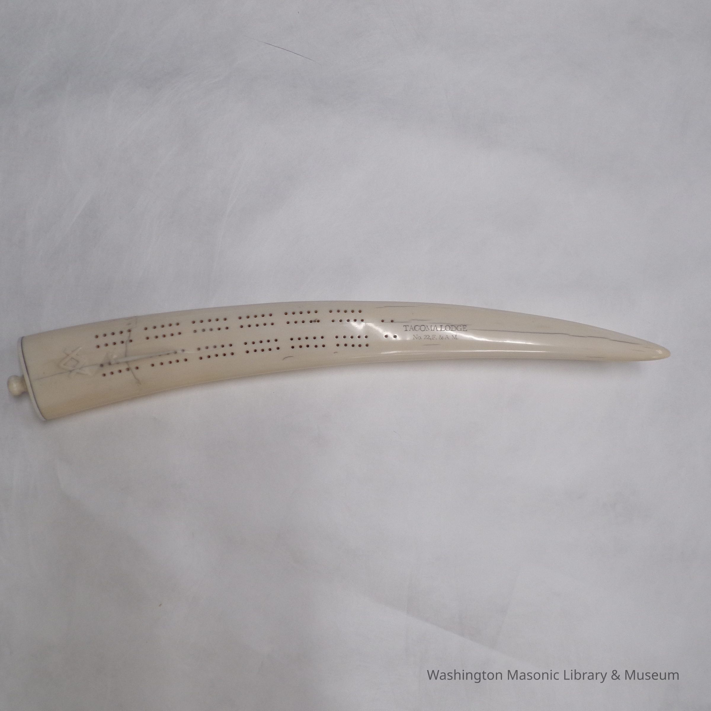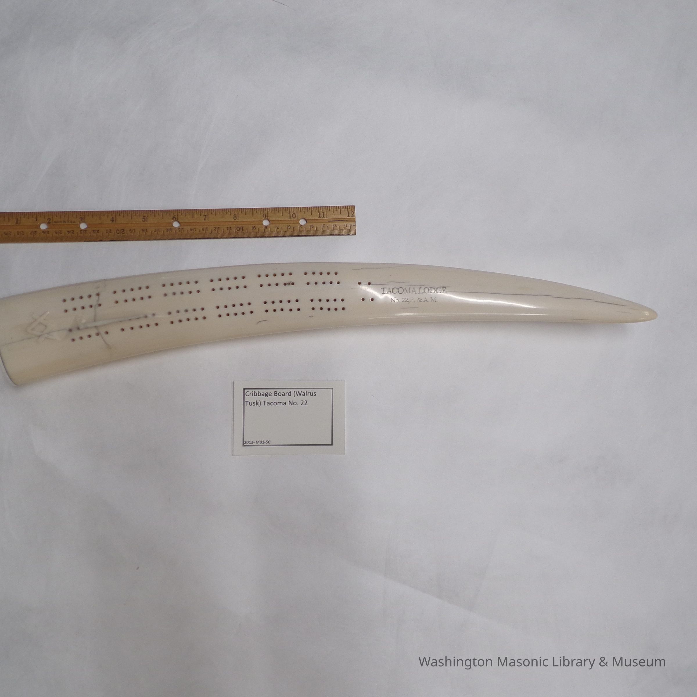 Cribbage Board: Made of Walrus Tusk. Belonged to Tacoma Lodge No. 22