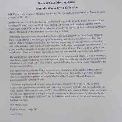 Apron: Paper. Masonic Cave Meeting hosted by Burns Lodge No. 97, A.F. & A.M., Burns, Oregon. 27th Annual MeetingCollection