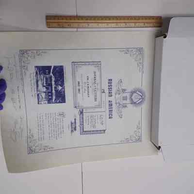 Document: Commemorative Print "Russian America" with hand signatures from 5 of the first 6 Grand Masters of Alaska (1986)
