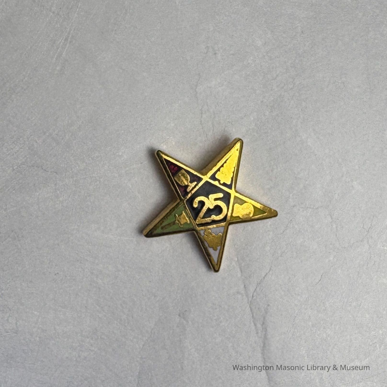 Pin: Eastern Star 25 Year Pin. Gold Star shape. Belonged to Marion Feaster. c.20th Century.Entry/Object ID