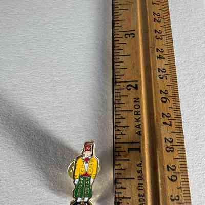 Pin: Shriner wearing a fez. "Al Kader Arab Patrol" Donated by PGM James O. Wood (c.1999)Entry/Object ID