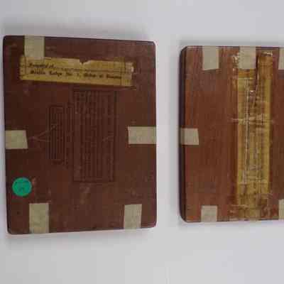 Box and Lid: Typed label on the lid's face reads, ""Kitty(?)" is an emblem of Charity and Hospitality and teaches us to extend (?) aid to the Brothers of poverty and distress"