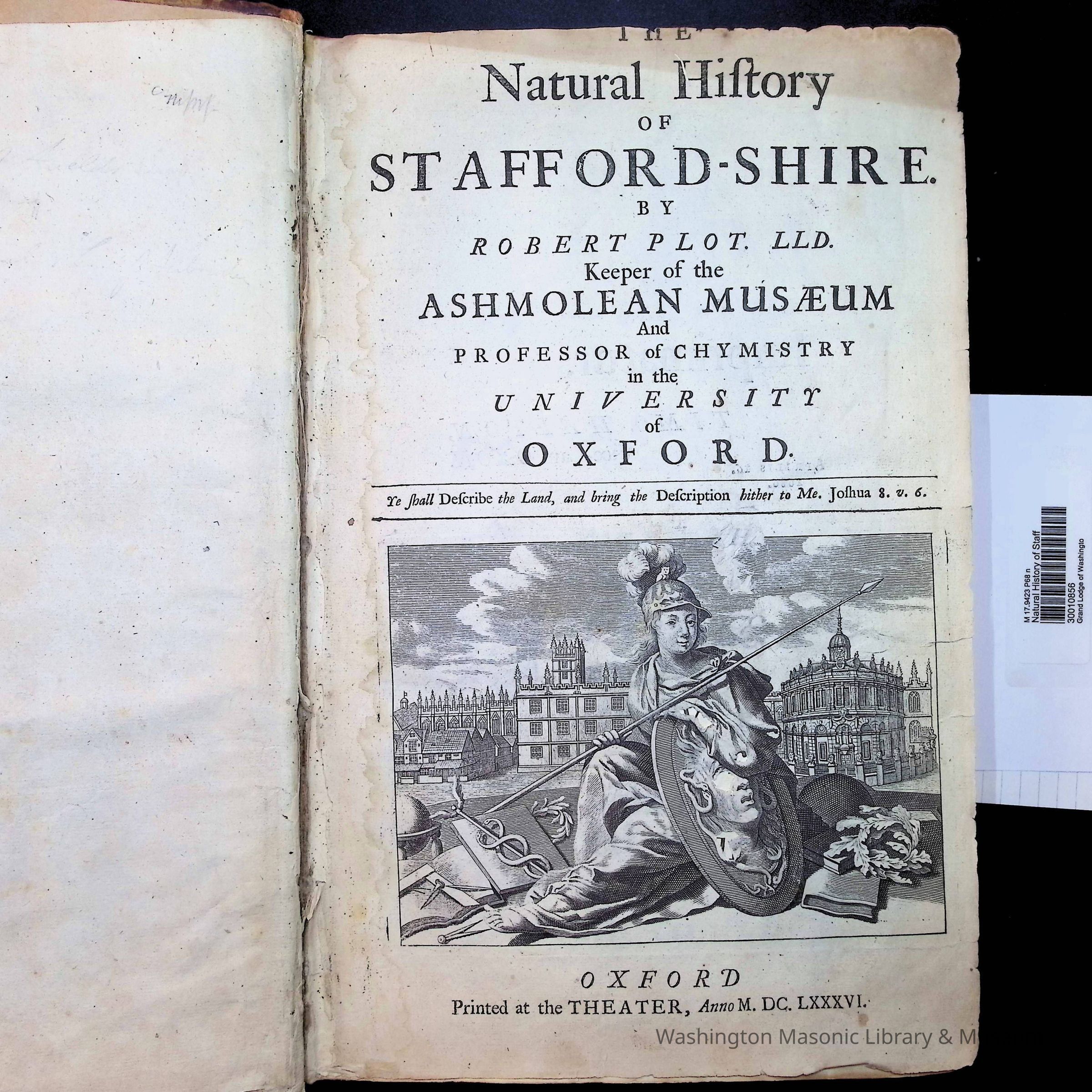 Some of the oldest items in our Library & Museum's collection are related to Elias Ashmole. These include a copy of 'The Natural History of Staffordshire (1686)' by Robert Plot, (Keeper of the Ashmolean Museum), and a hop token with the initials "E.A." engraved on it.