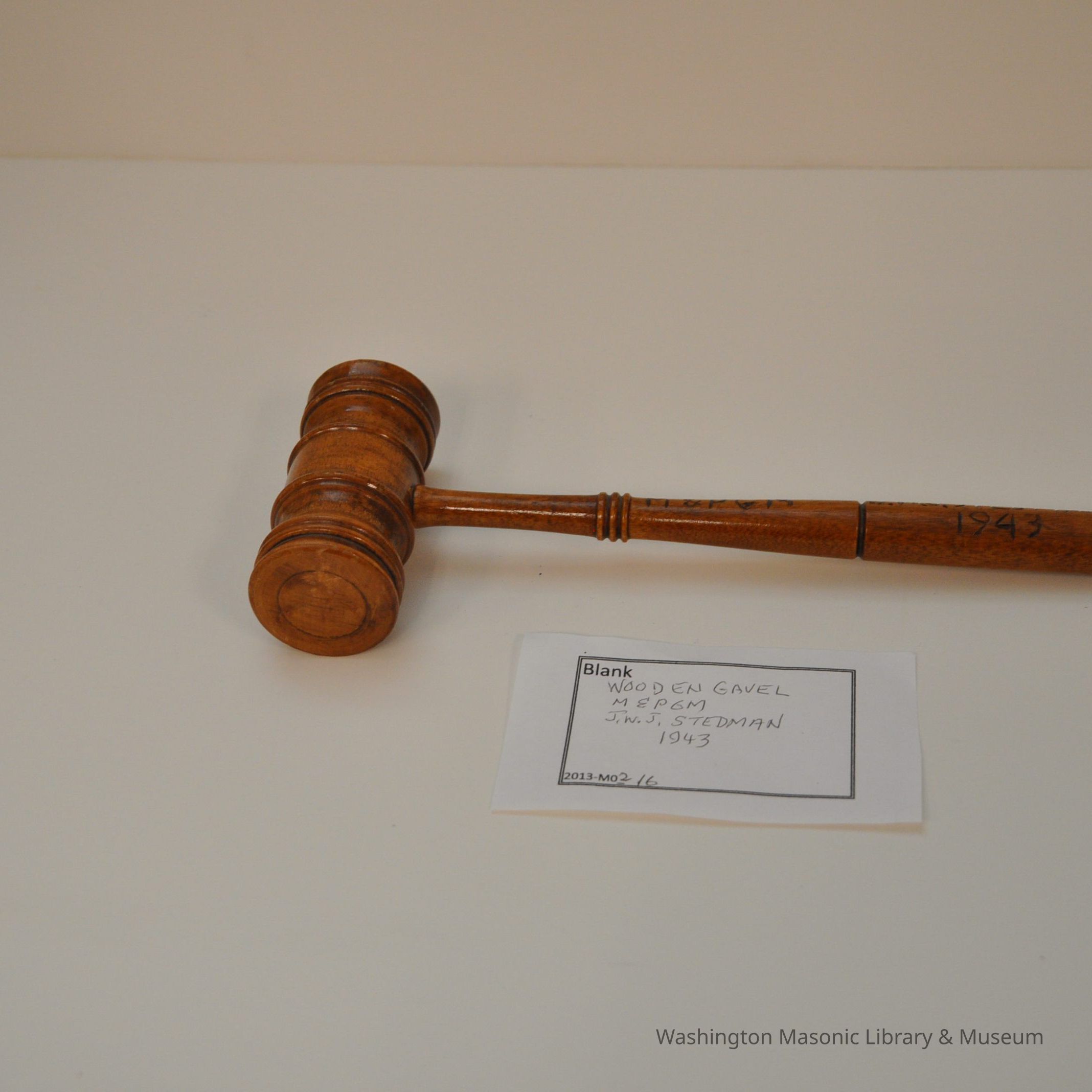 Gavel: Wooden Gavel M&PGM J.W.J. Stedman 1943Entry/Object ID