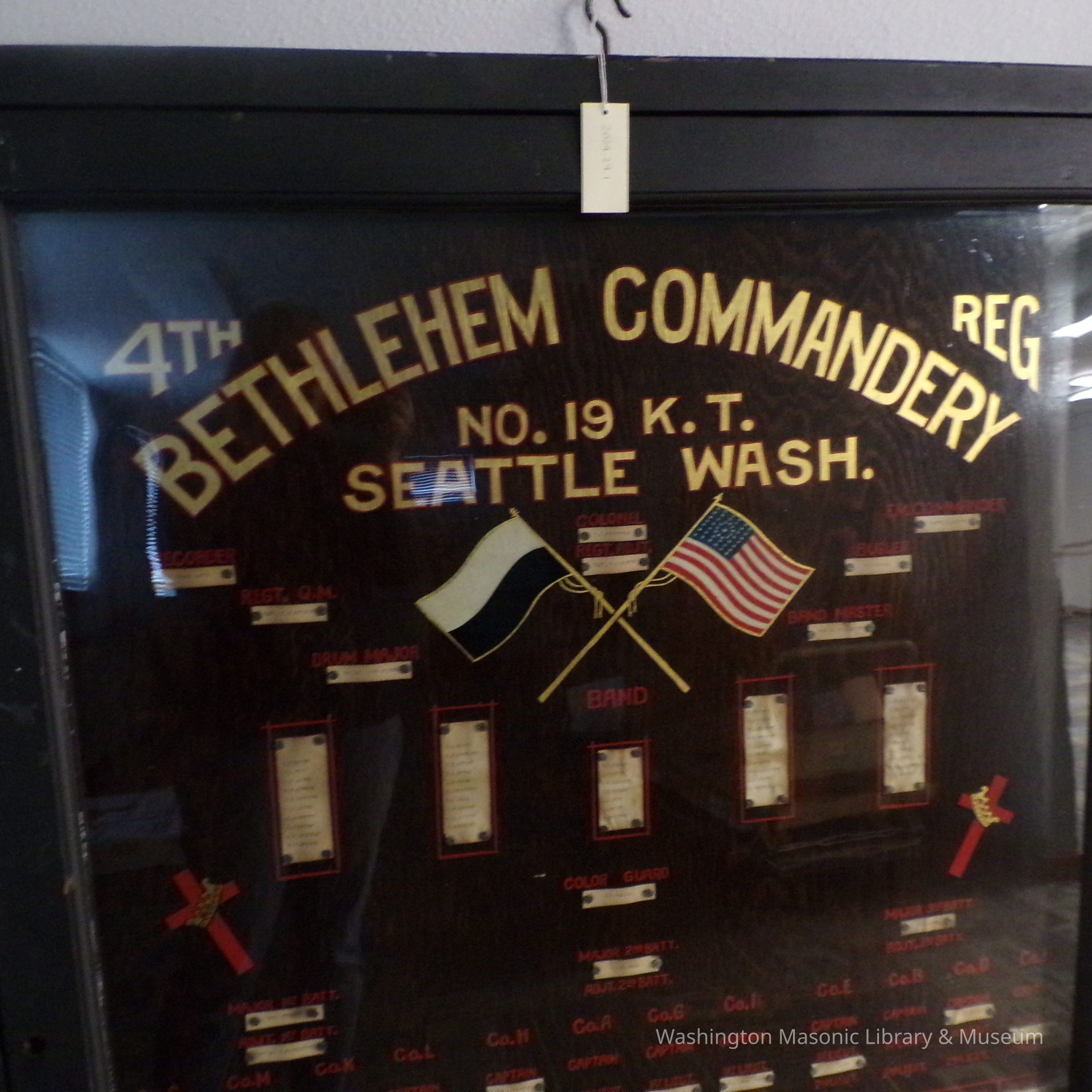 Display Case: 4th Regular Bethlehem Commandery No. 19, Knights Templar, Seattle, Wash.Dimensions