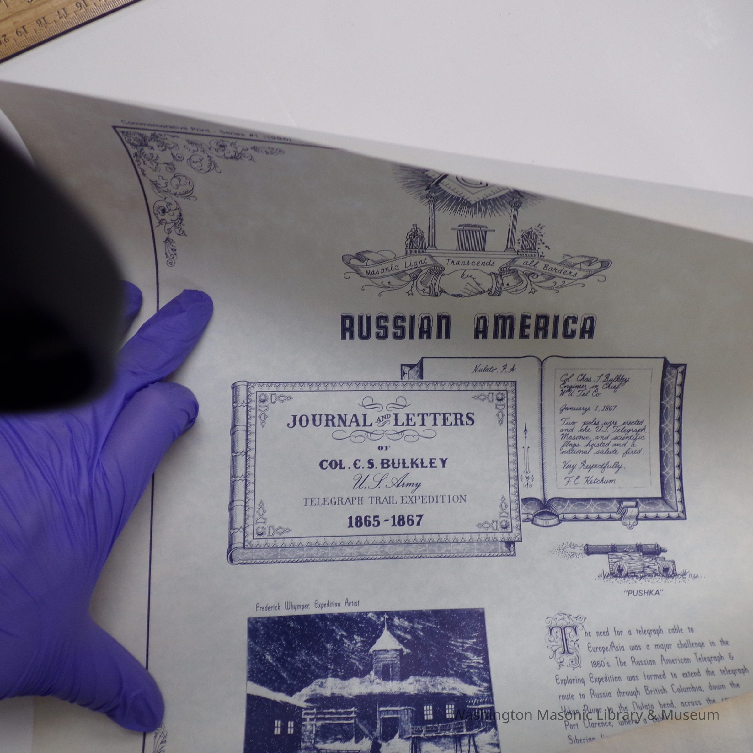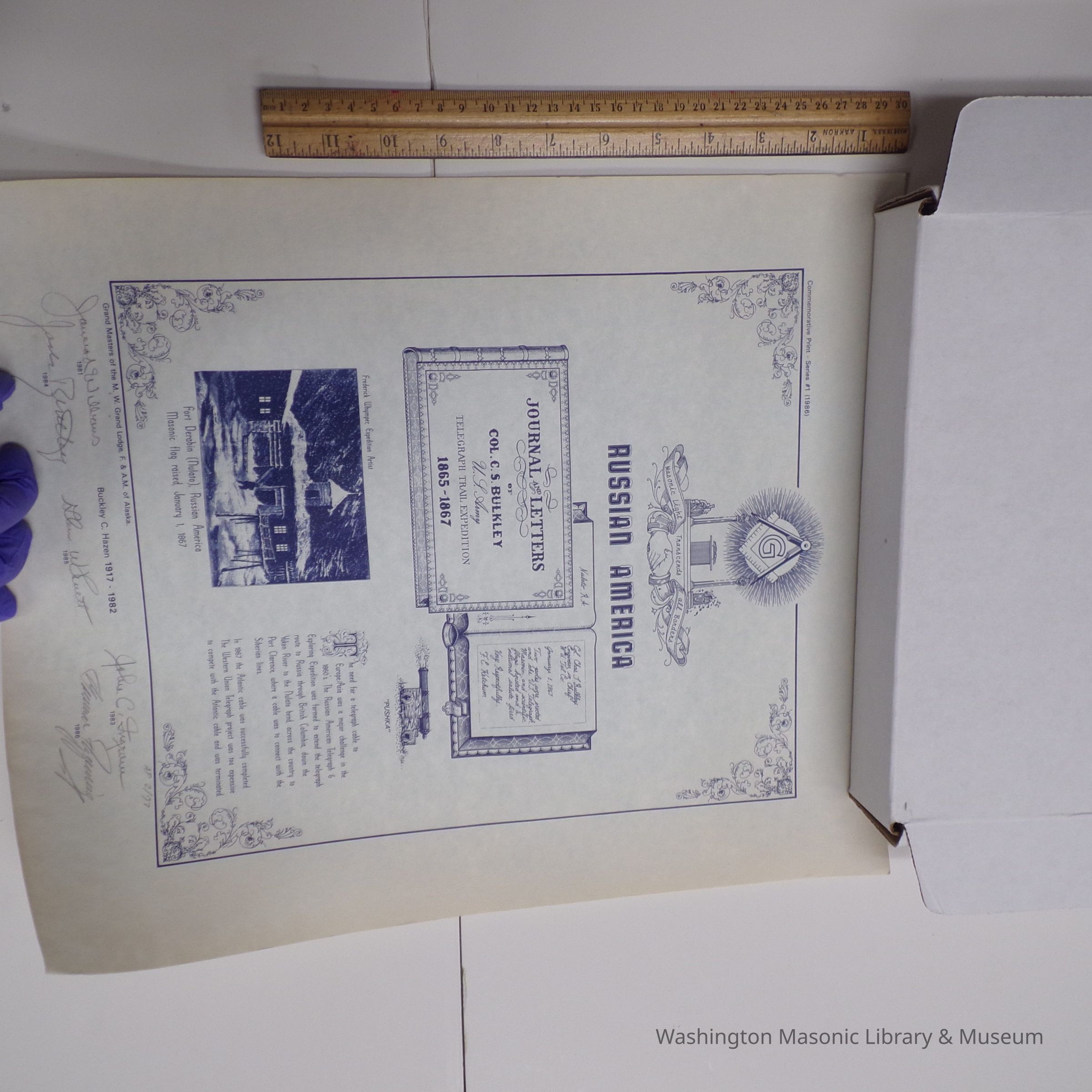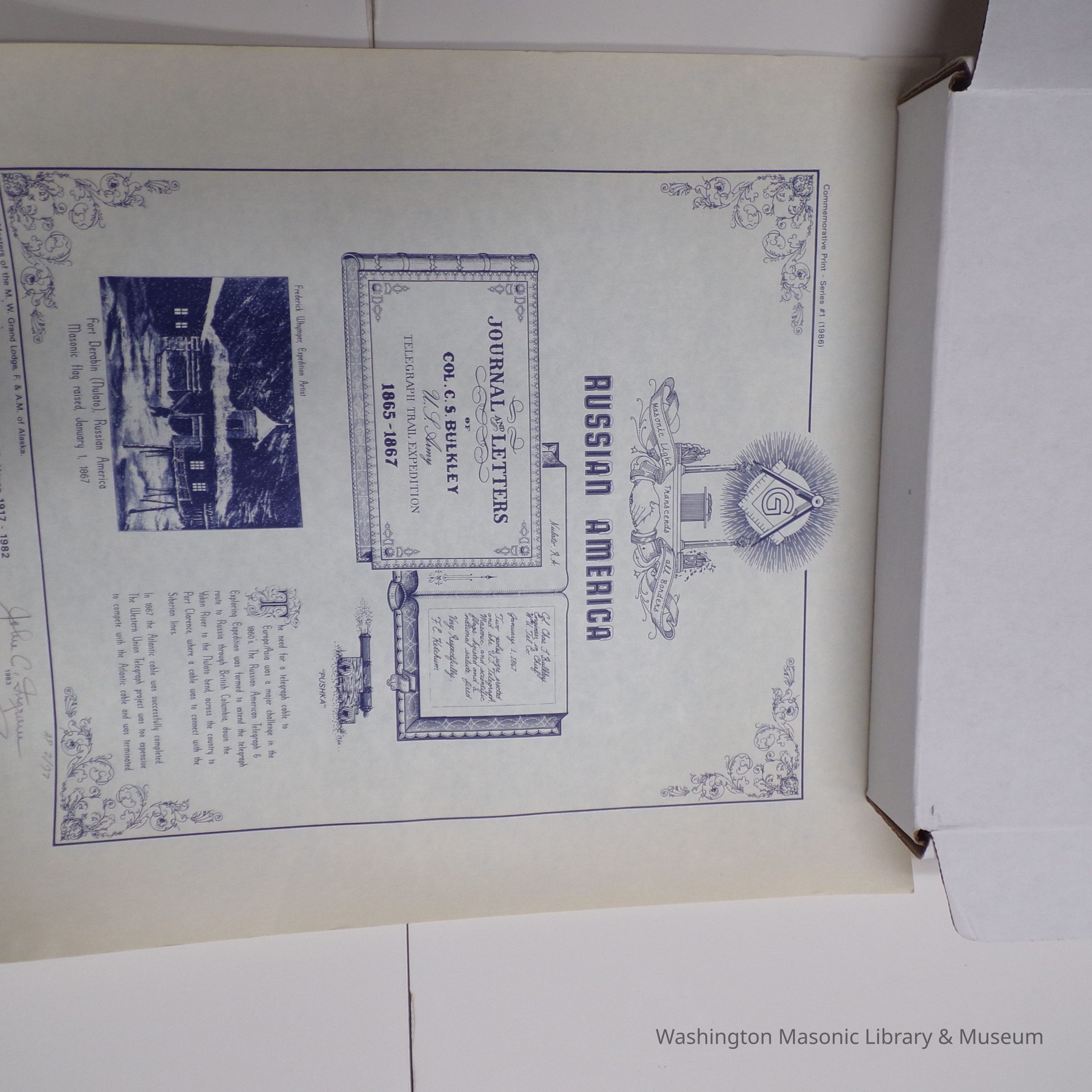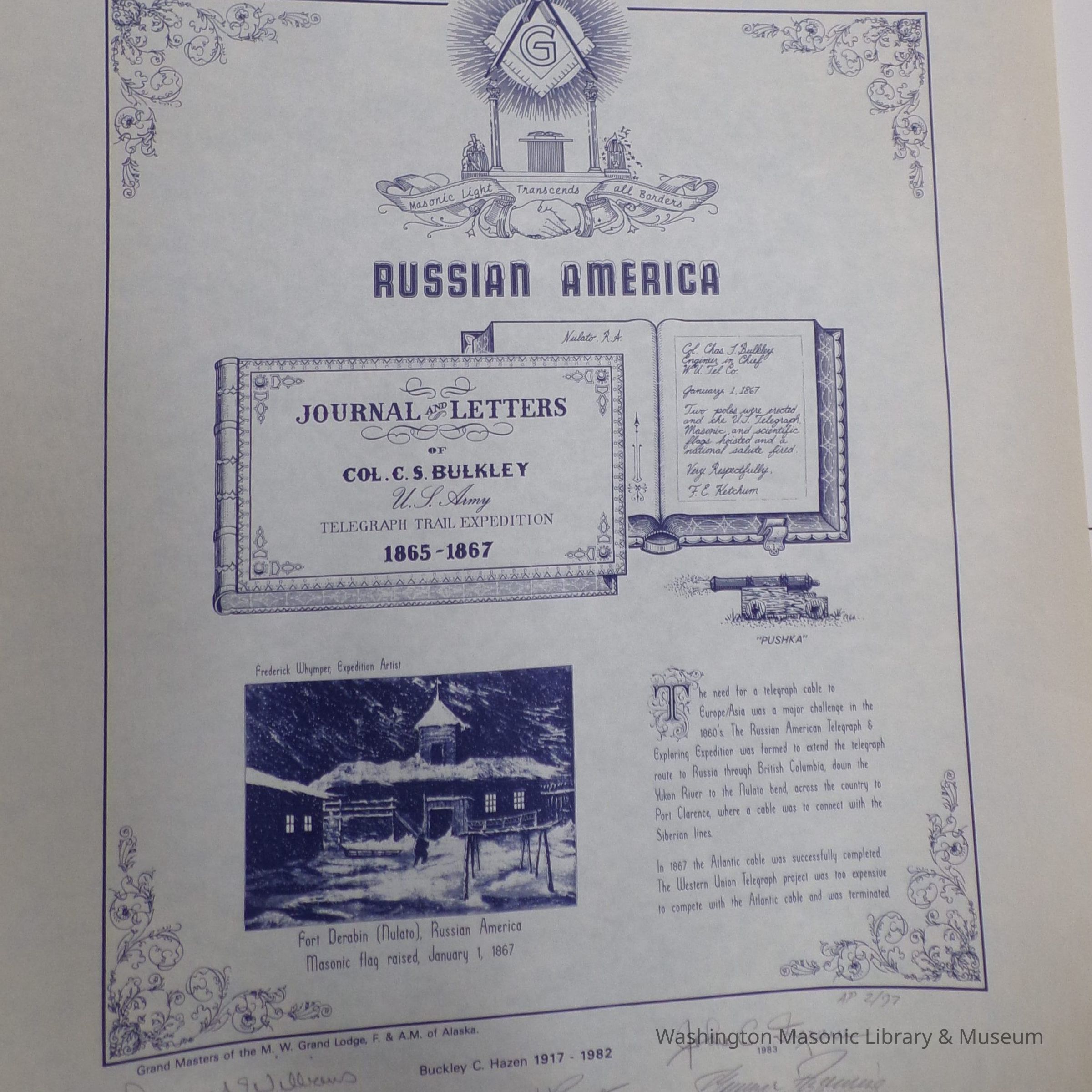 Document: Commemorative Print "Russian America" with signatures from 5 of the first 6 Grand Masters of Alaska (1986)Entry/Object ID