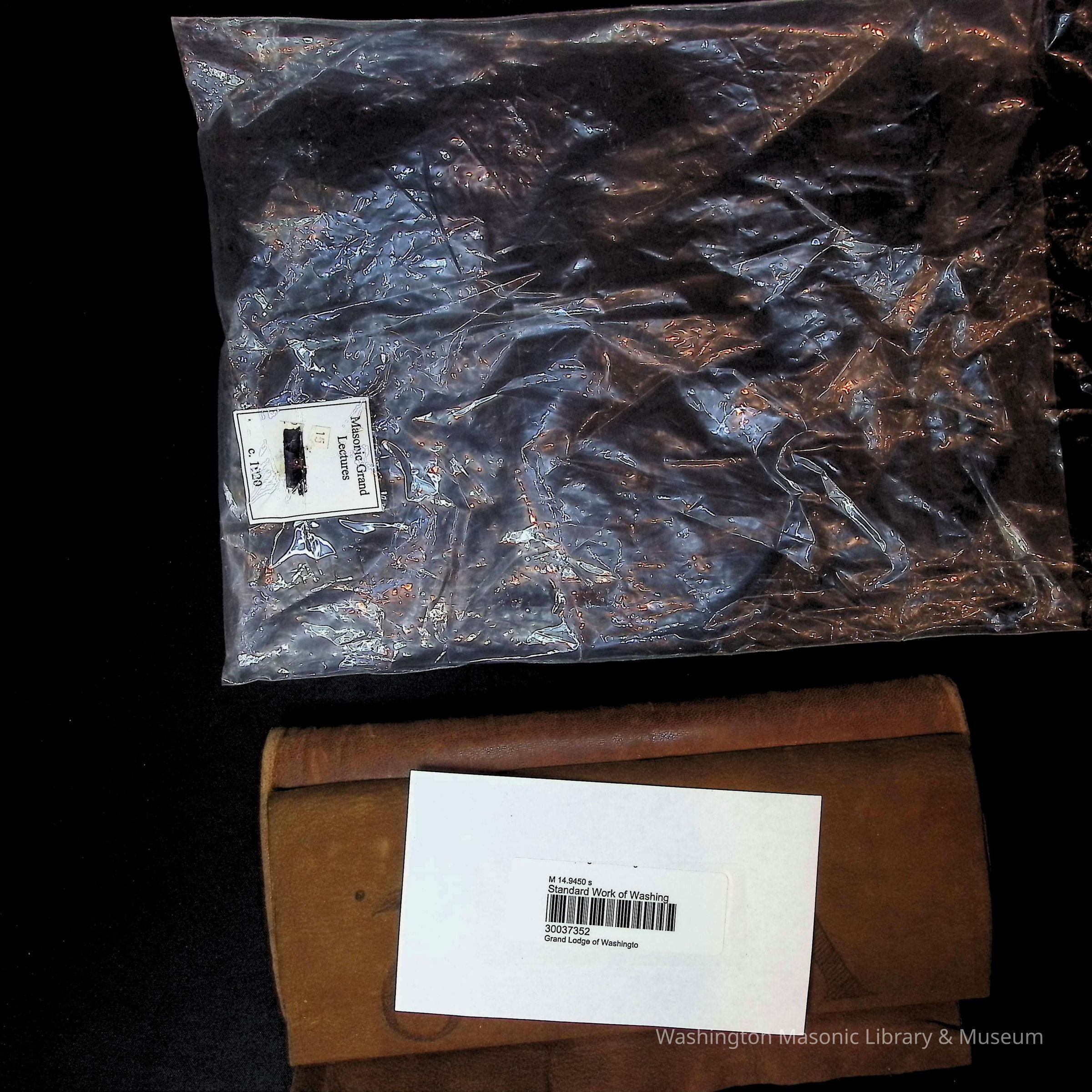 Document in leather binding: "Vol. 2" Standard Work of Washington compiled by Royal A. Gove and David S. Prescott (1904) by order of the Grand Lodge of Washington. Found mention of the two as part of the committee "custodians of the work" in 1903 proceedings.
