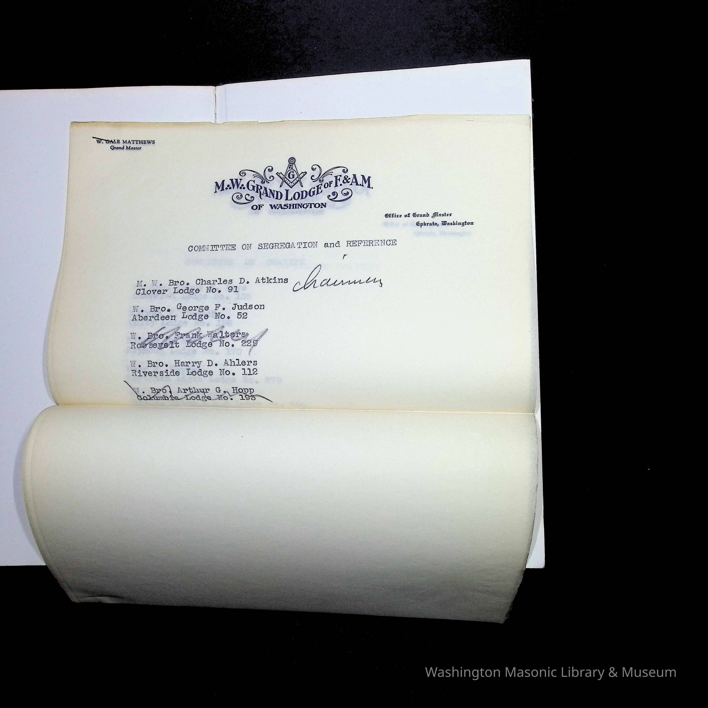Documents: List of Committees for the MW GL of WA, belonged to GS Horace W. Tyler (1938)Collection