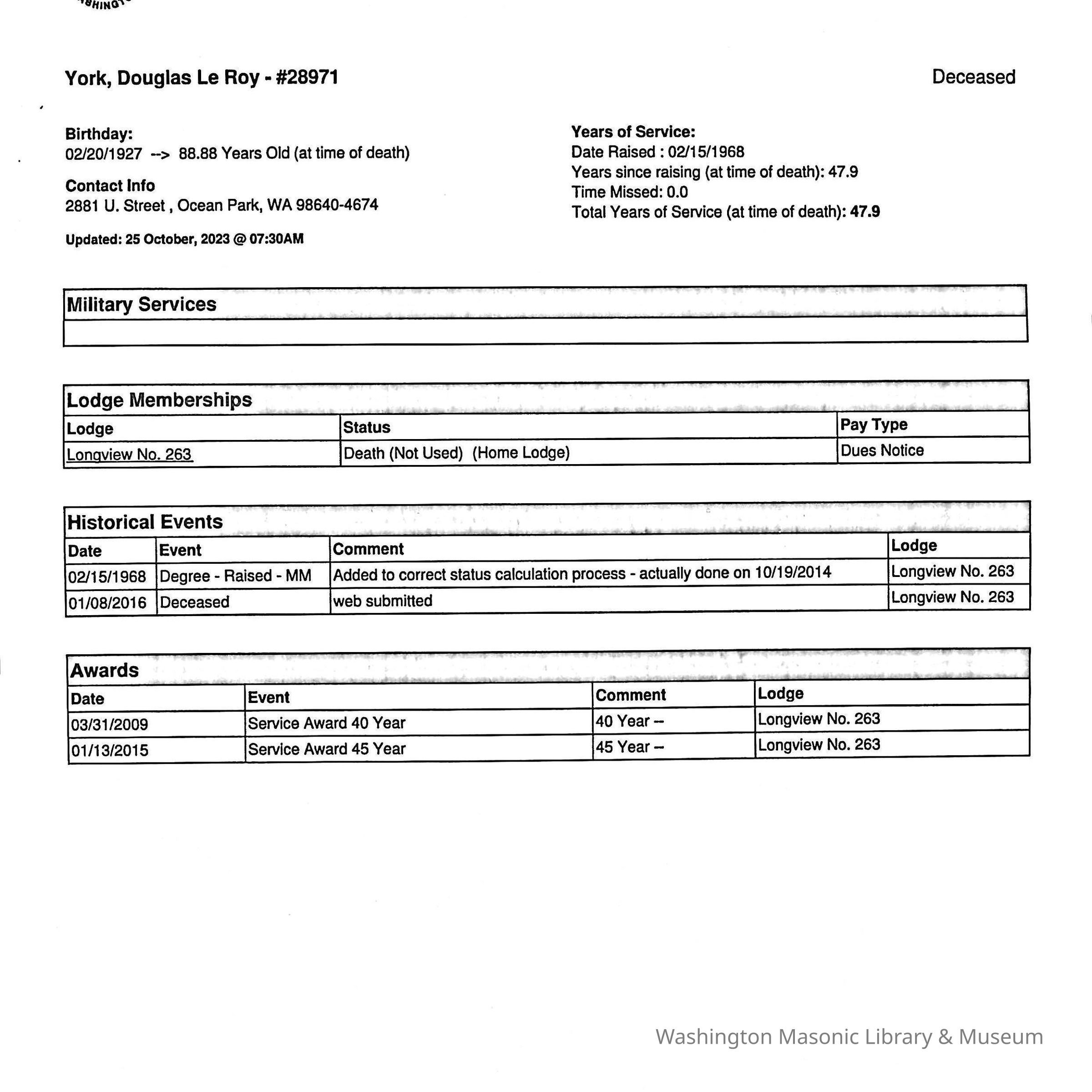 Washington Masonic Services - Library & Museum