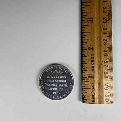On Front Side: "Corner Stone Laying/Grand Lodge F. & A. M. of Wash /Henry Foss/ High School/ Tacoma, Wash./April 28, 1973"