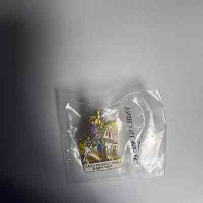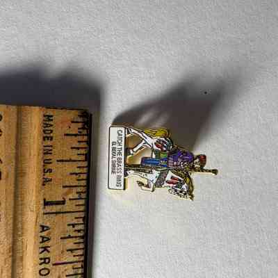 Pin: Shriner riding a white carasoul horse. "Catch the Brass Ring/ El Bekal Shrine" Found in a cash of pins donated by PGM James O. Wood.Collection