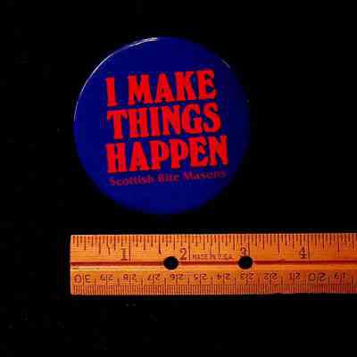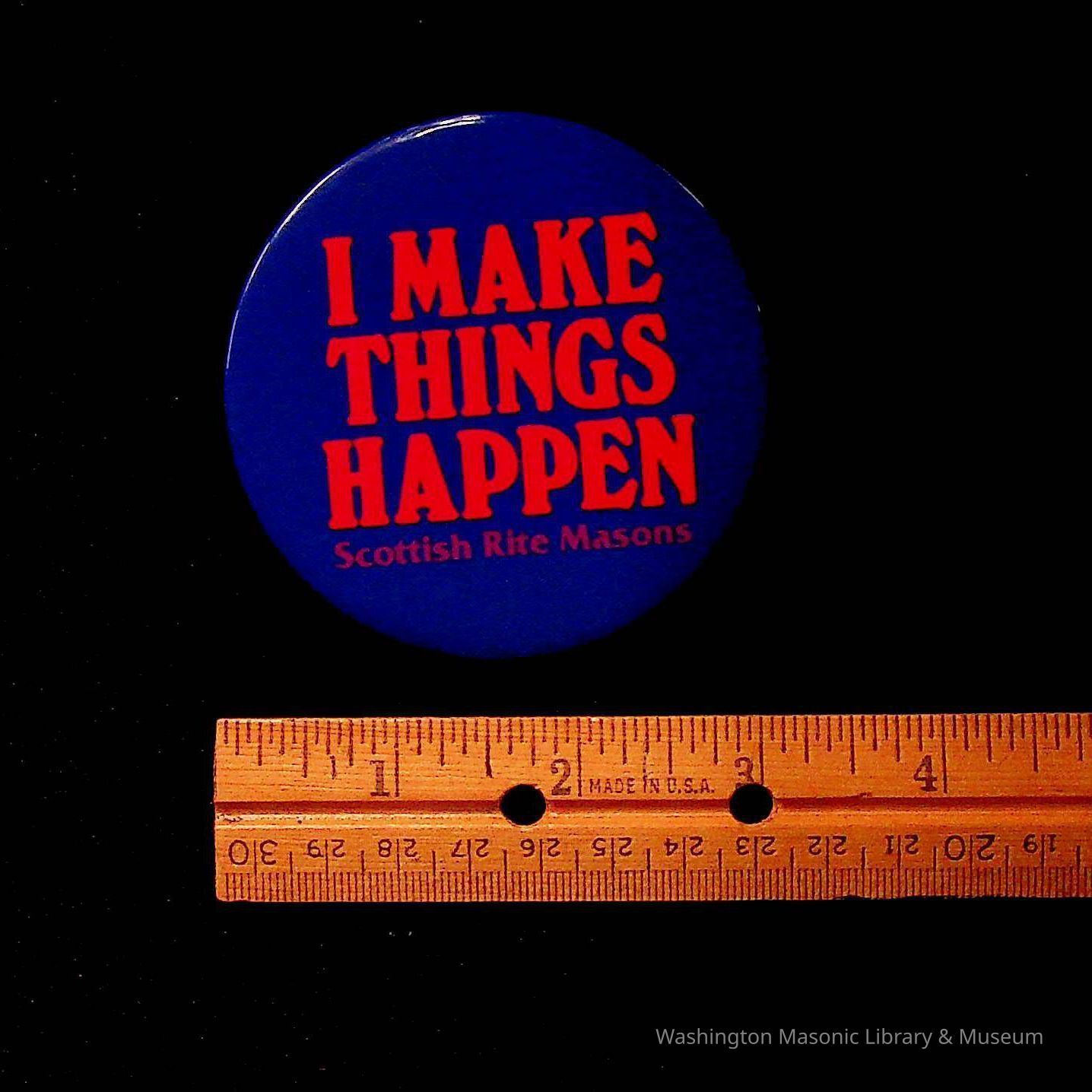 Button: Blue with red letters. "I Make Things Happen, Scottish Rite Masons"Entry/Object ID