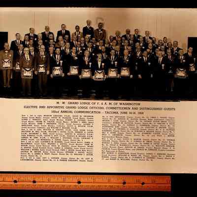 Photograph: MW Grand Lodge of Washington, Elective and Appointive grand Lodge Officers, Annual Communication, 1959. Found in photo with other photographs, various.Collection