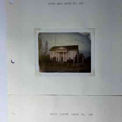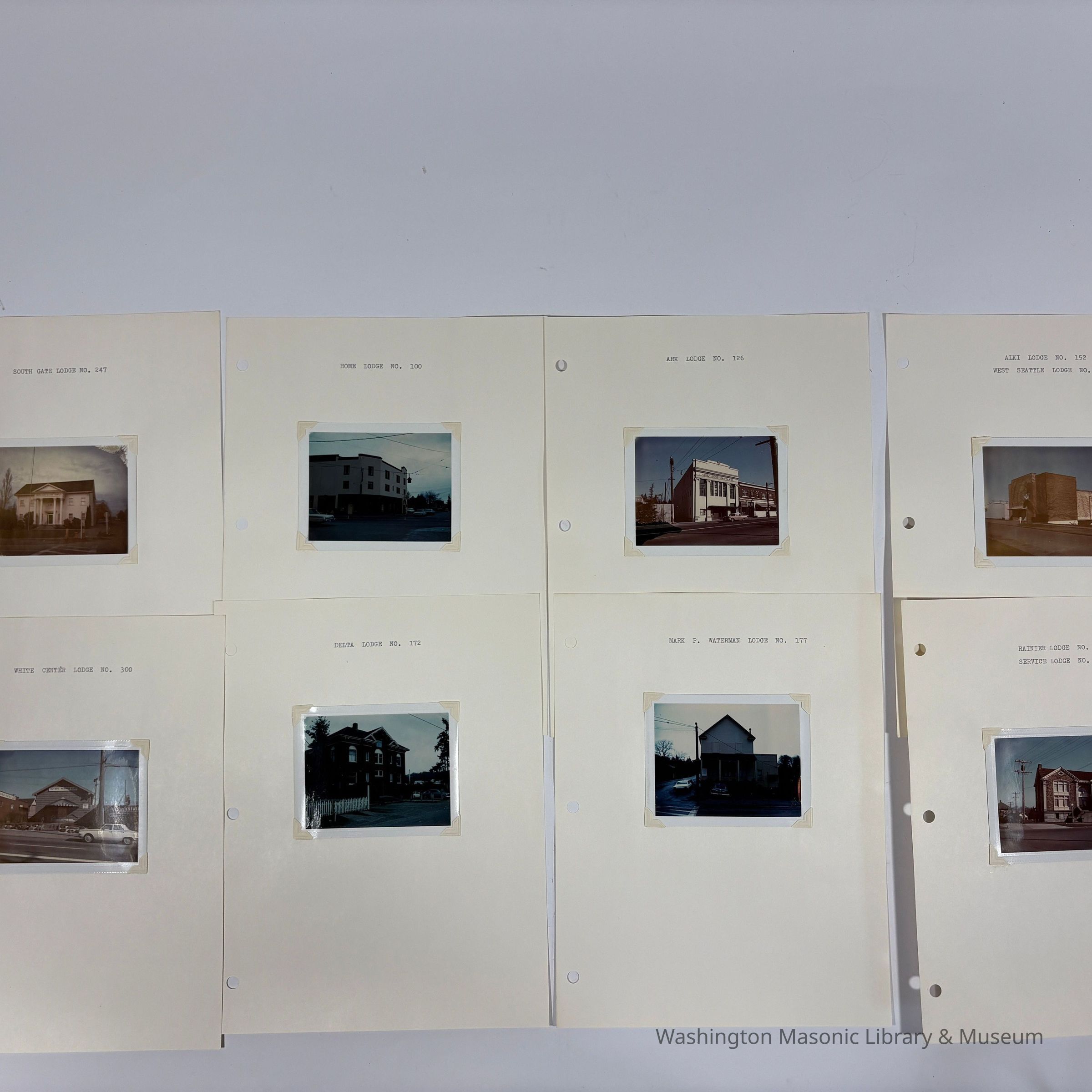 Eight Photographs: Attached to paper. Of the exteriors of Lodge buildings throughout Washington's jurisdiction. (c. 1970s)
