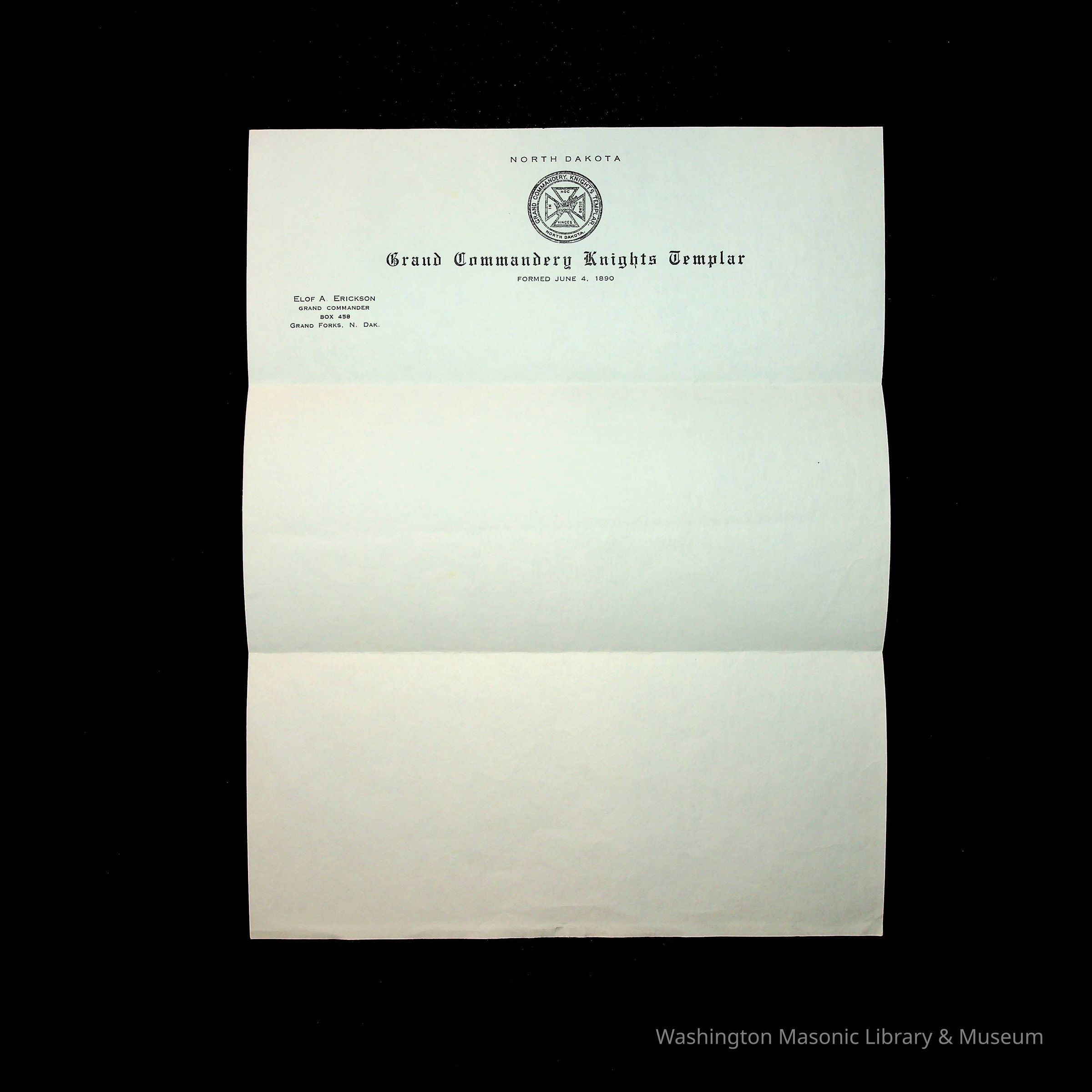 e) Letterhead for Elof A. Erickson of North Dakota