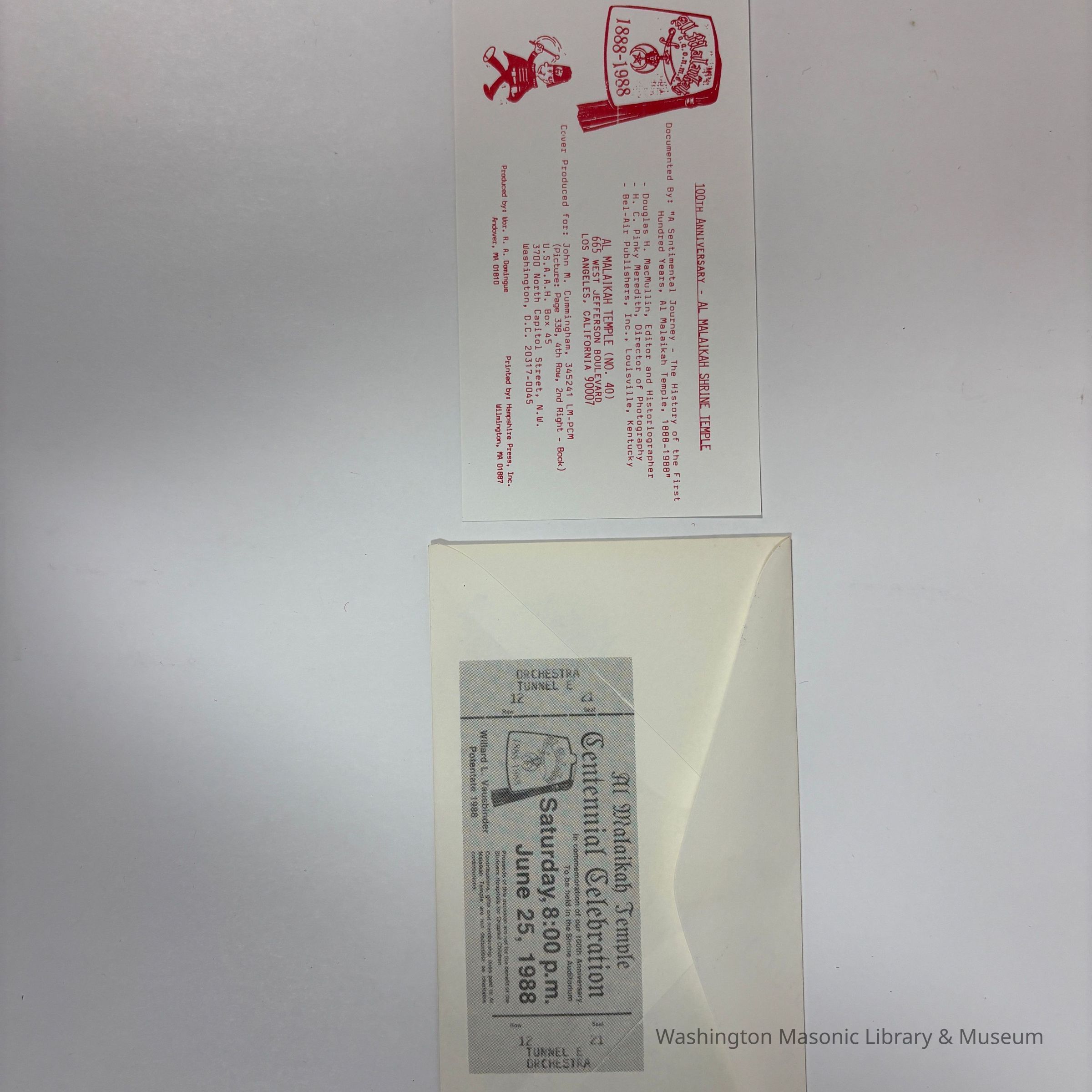 Envelope and Insert: Centennial of Al Malaikah Temple, Los Angeles, California (1988)Entry/Object ID