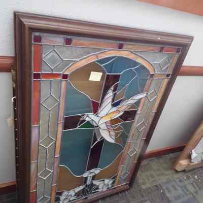 Stained Glass Window: shows bird and flowers. From the Fourth Floor Chapel of the Masonic Retirement Home in Zenith, WAEntry/Object ID