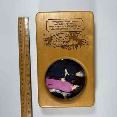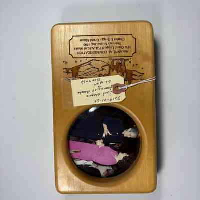 Plaque: Wood Plaque with picture of two women talking. 9th Annual Communication MW Grand Lodge of F&AM of Alaska, February 1st and 2nd, 1990. Charles I Gregg, Grand Master. Presumably a gift to PGM William Miller, who was Grand Master June 1989-June 1990.Collection
