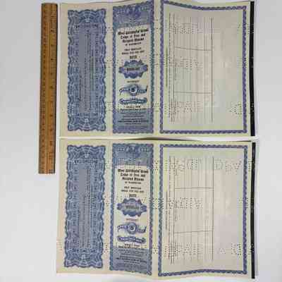 Two Notes: 2 Mortgage Notes issued by the Most Worshipful Grand Lodge of Washington for $500. Serially from March 1st, 1933 to September 1st, 1933. 5 Percent Interest. First National Bank of Seattle, Seattle Washington. (1933). Punch holes throughout.Create Date