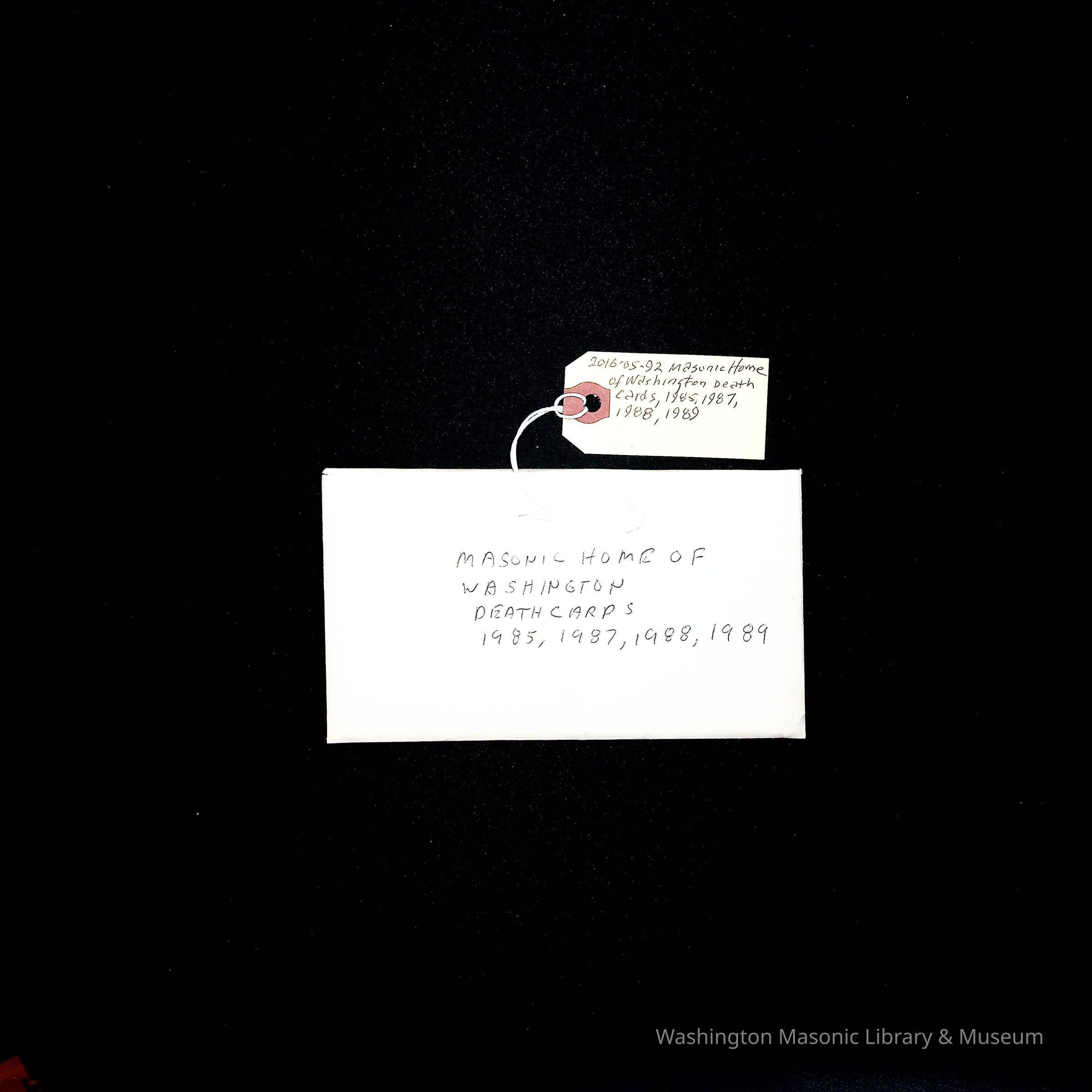 11 Notecards: 11 notecards in envelope announcing the deaths of different residents of the Washington Masonic Home, or admittance to the Masonic Home ca. 1985-1989. Signed by Donna Mae Ketten, AdministratorCollection