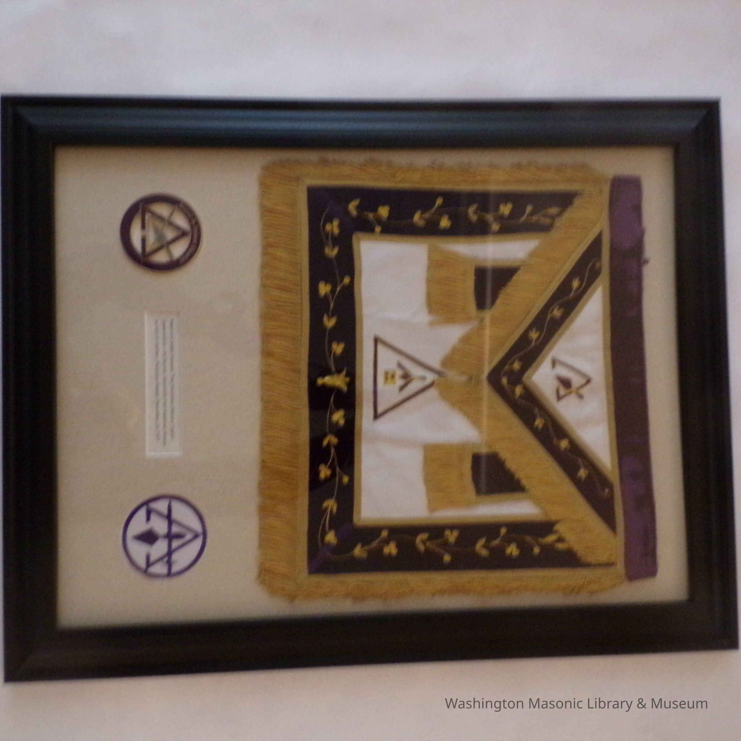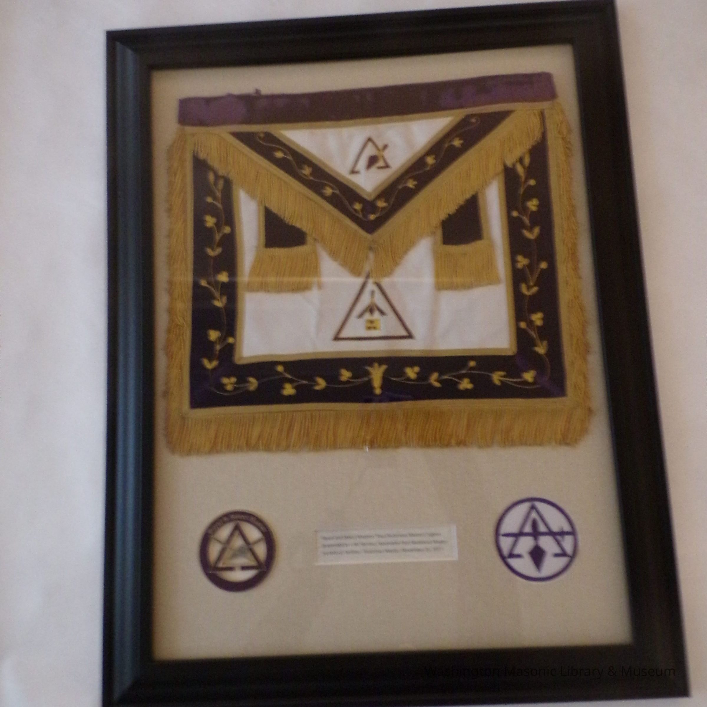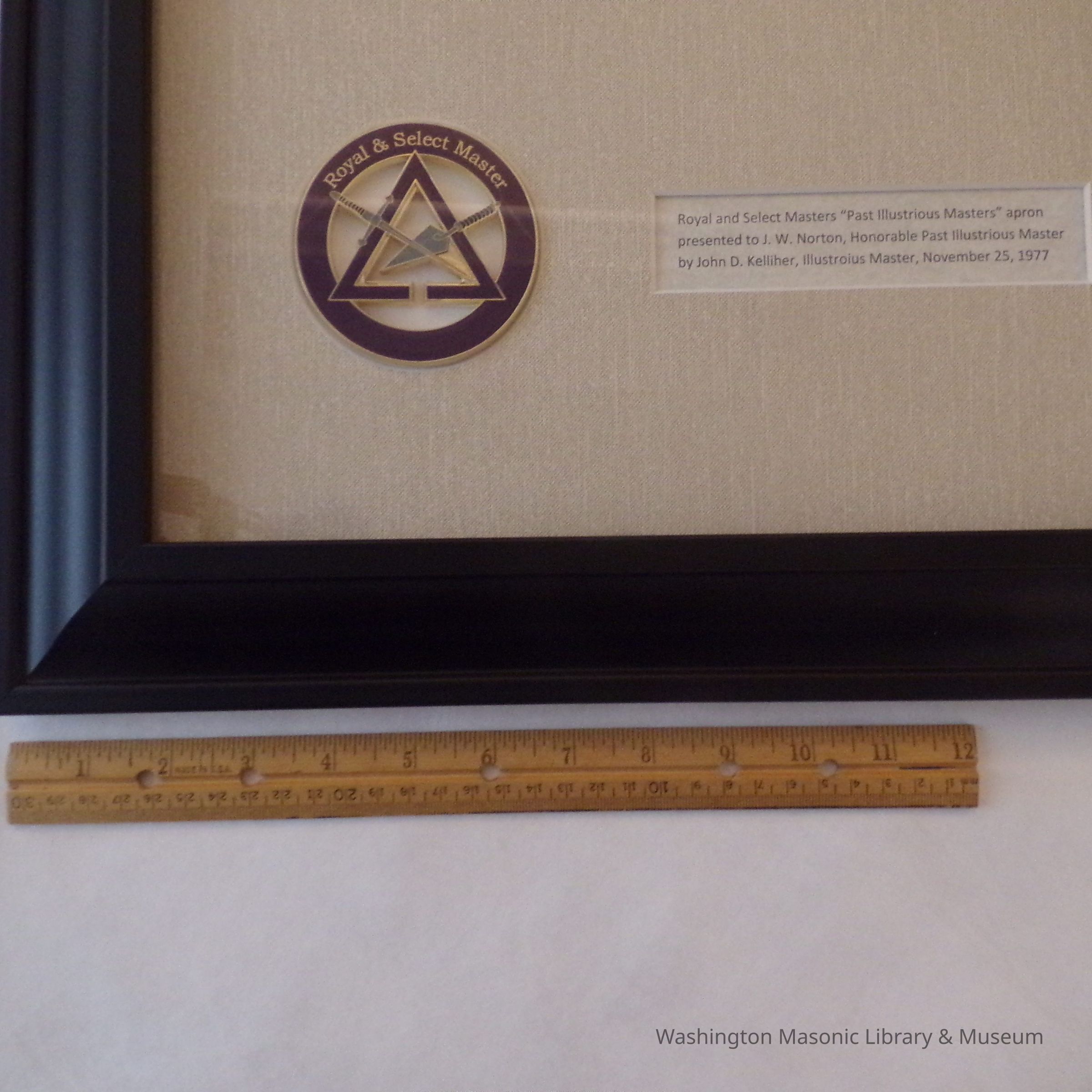 Framed Apron: "Royal an dSelect Mastes "Past Illustrious Masters" apron presented by J. W. Norton, Honorable Past Illustrious MAster by John D. Kelliher, Illustrious Master, November 25, 1977"Collection