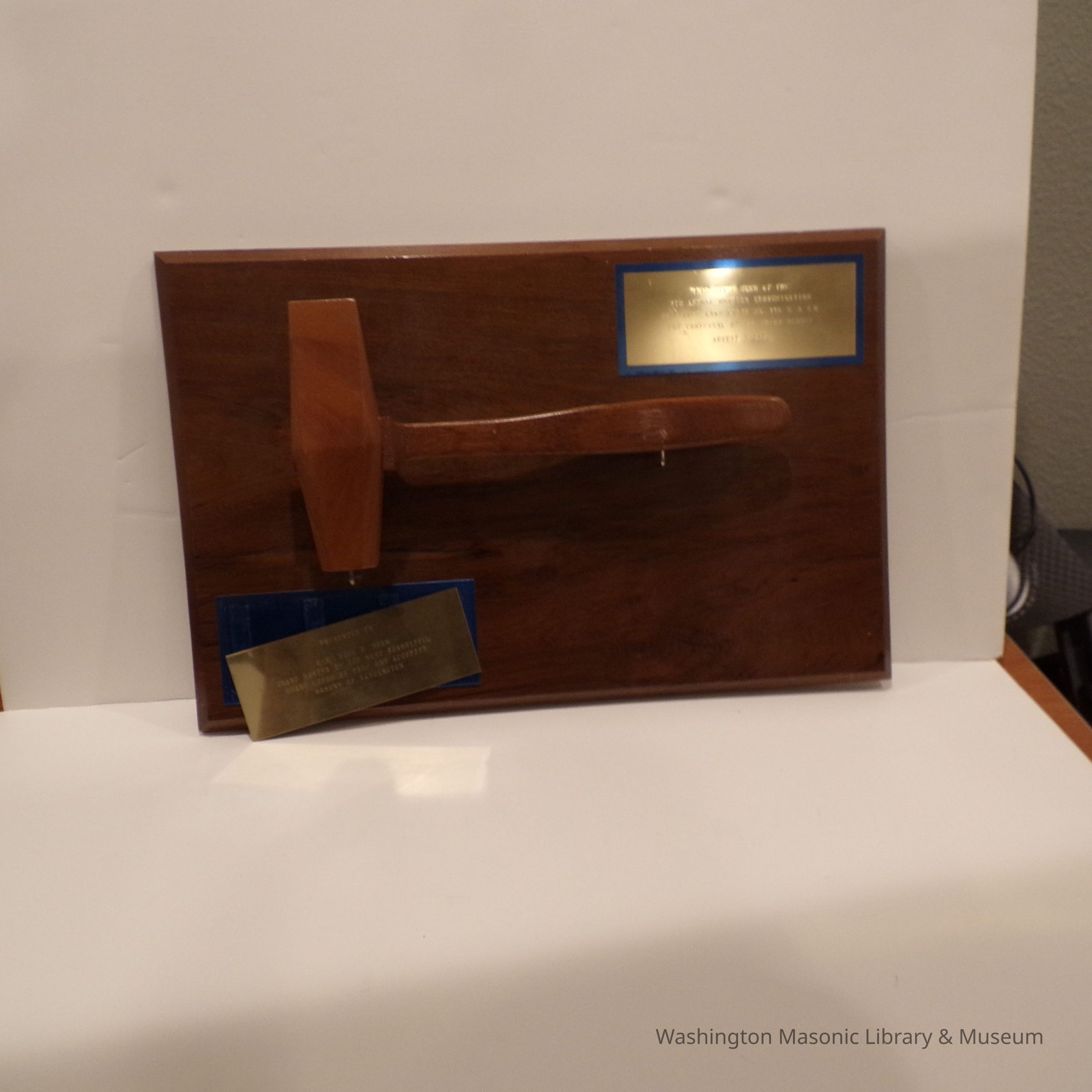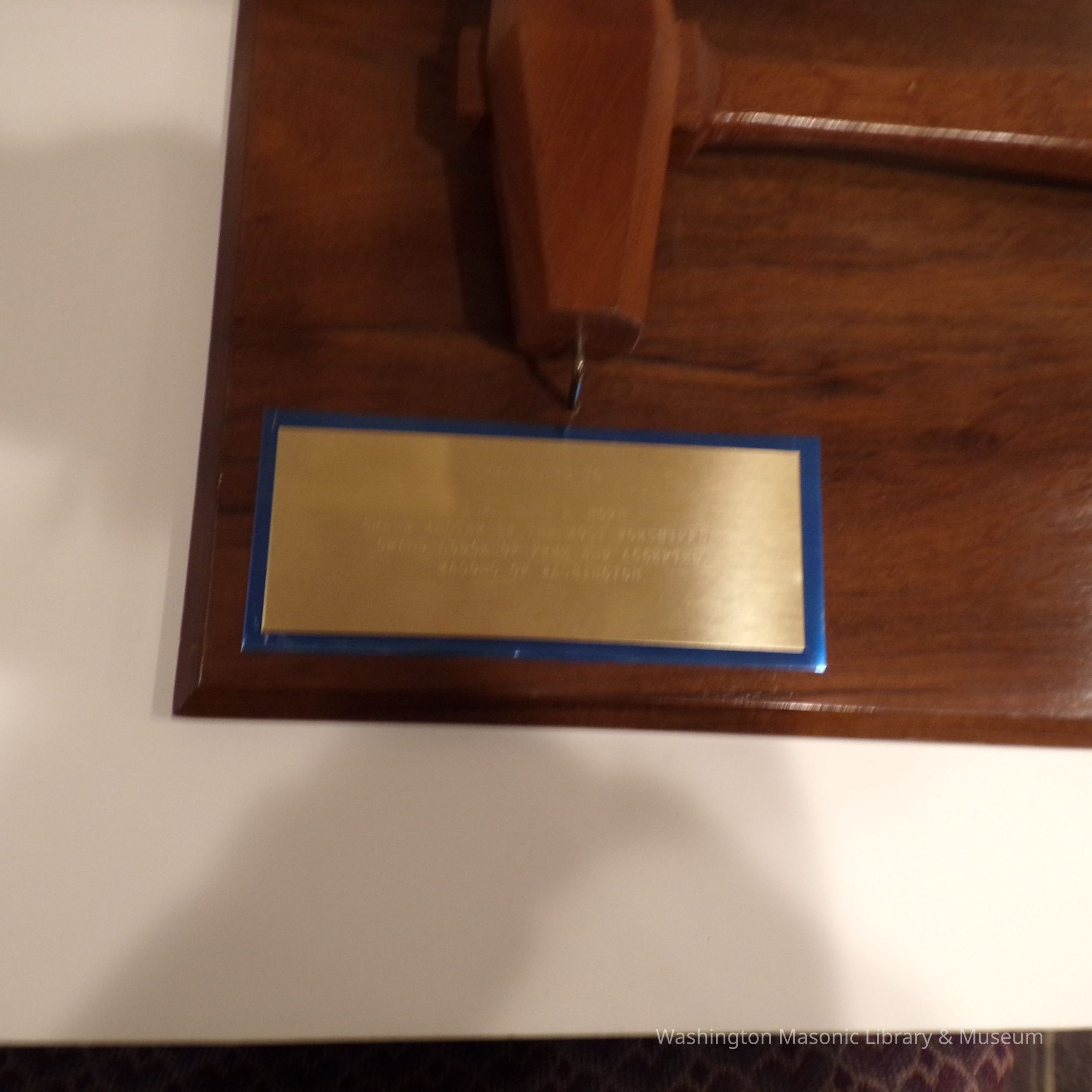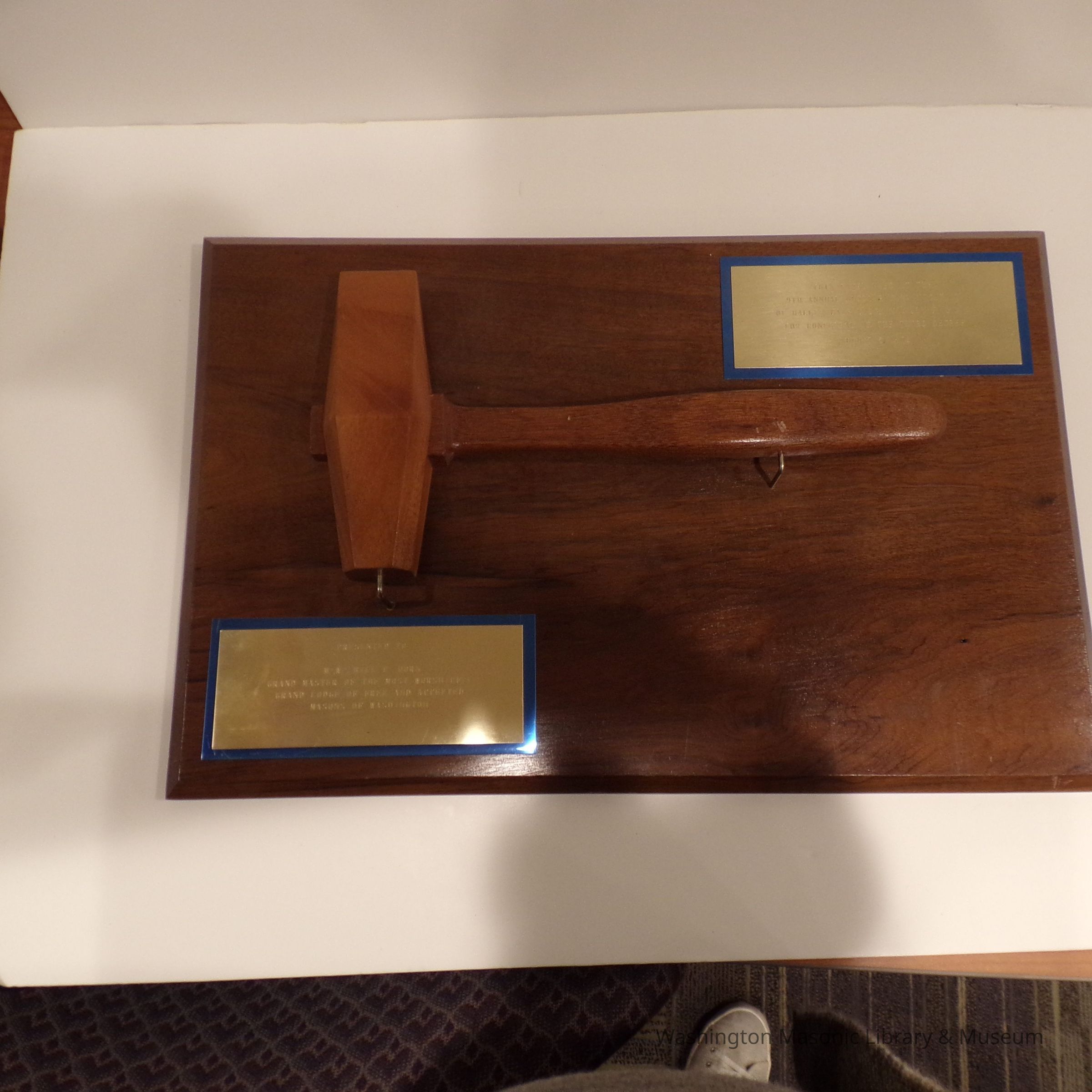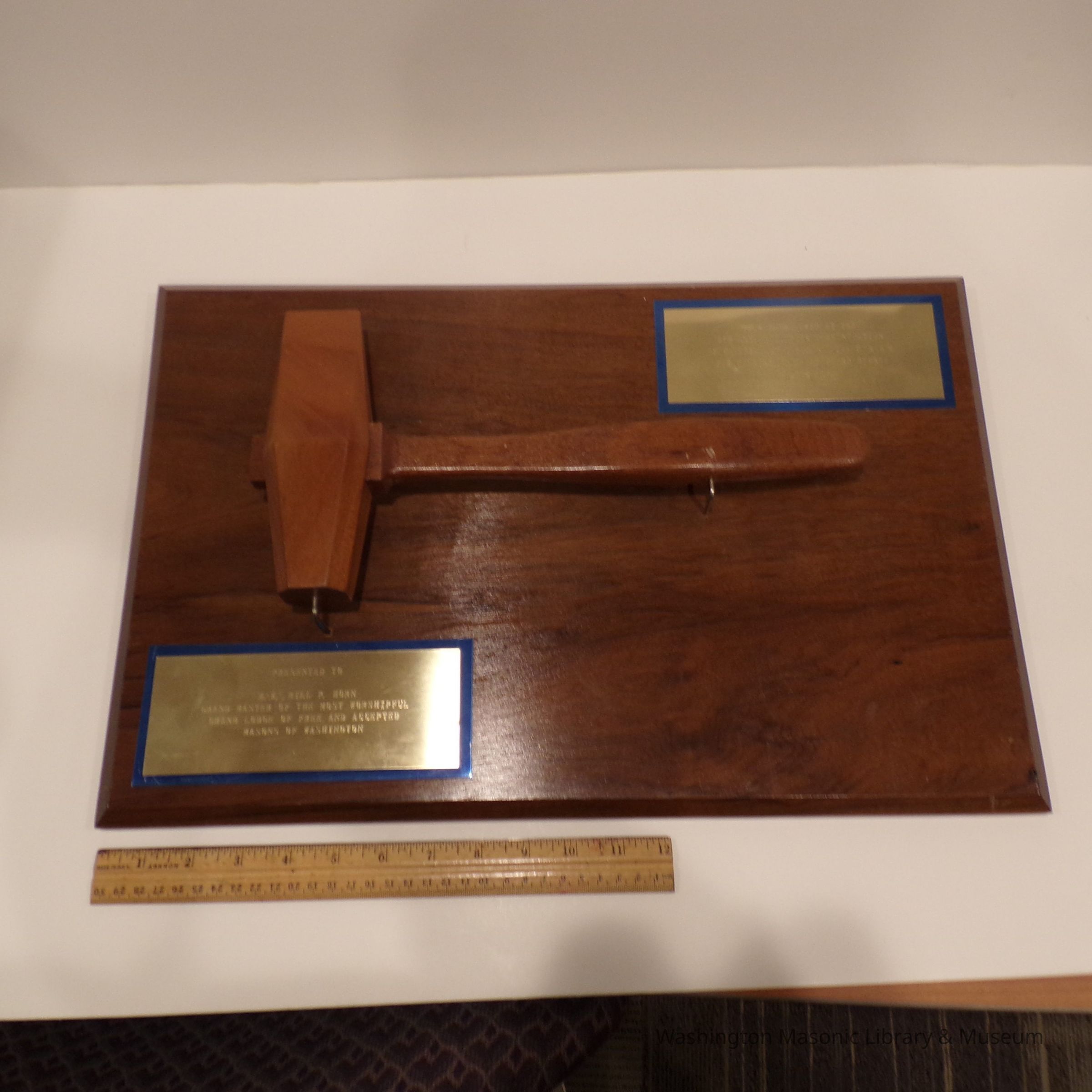 One says "Presented to/ M.W. Bill P. Horn/ Grand Master of the Most Worshipful/Grand Lodge of Free and Accepted/ Masons of Washington"