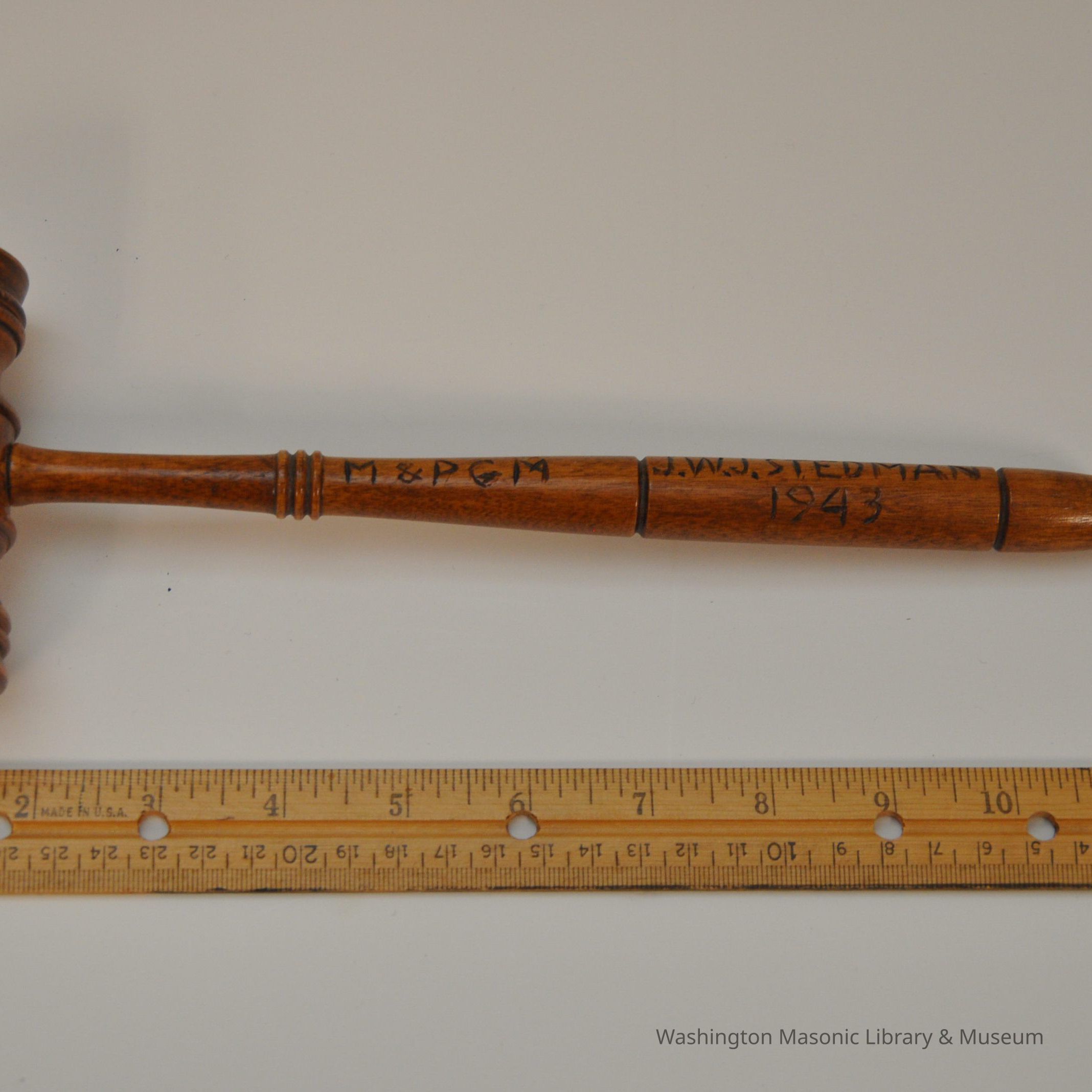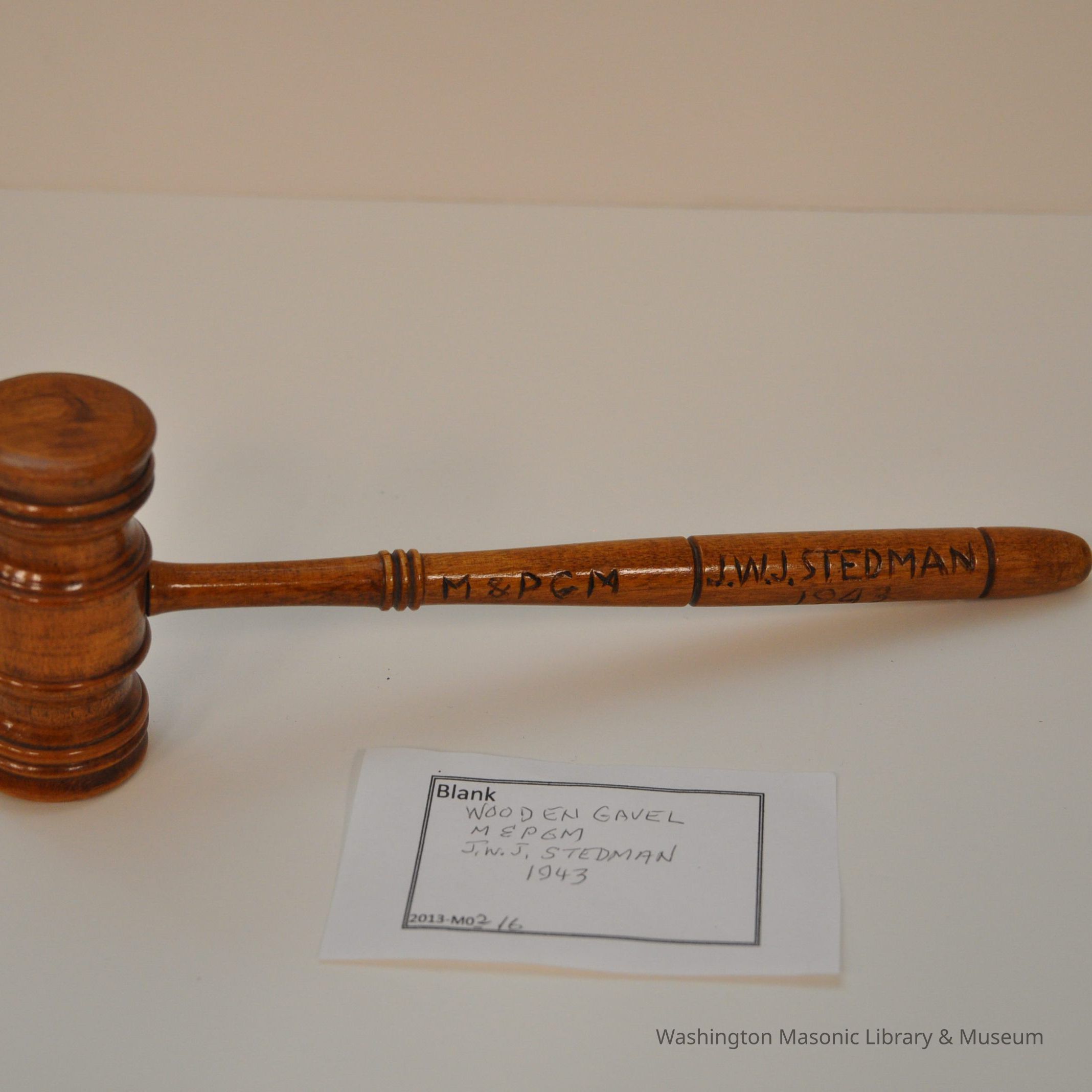 Gavel: Wooden Gavel M&PGM J.W.J. Stedman 1943Entry/Object ID