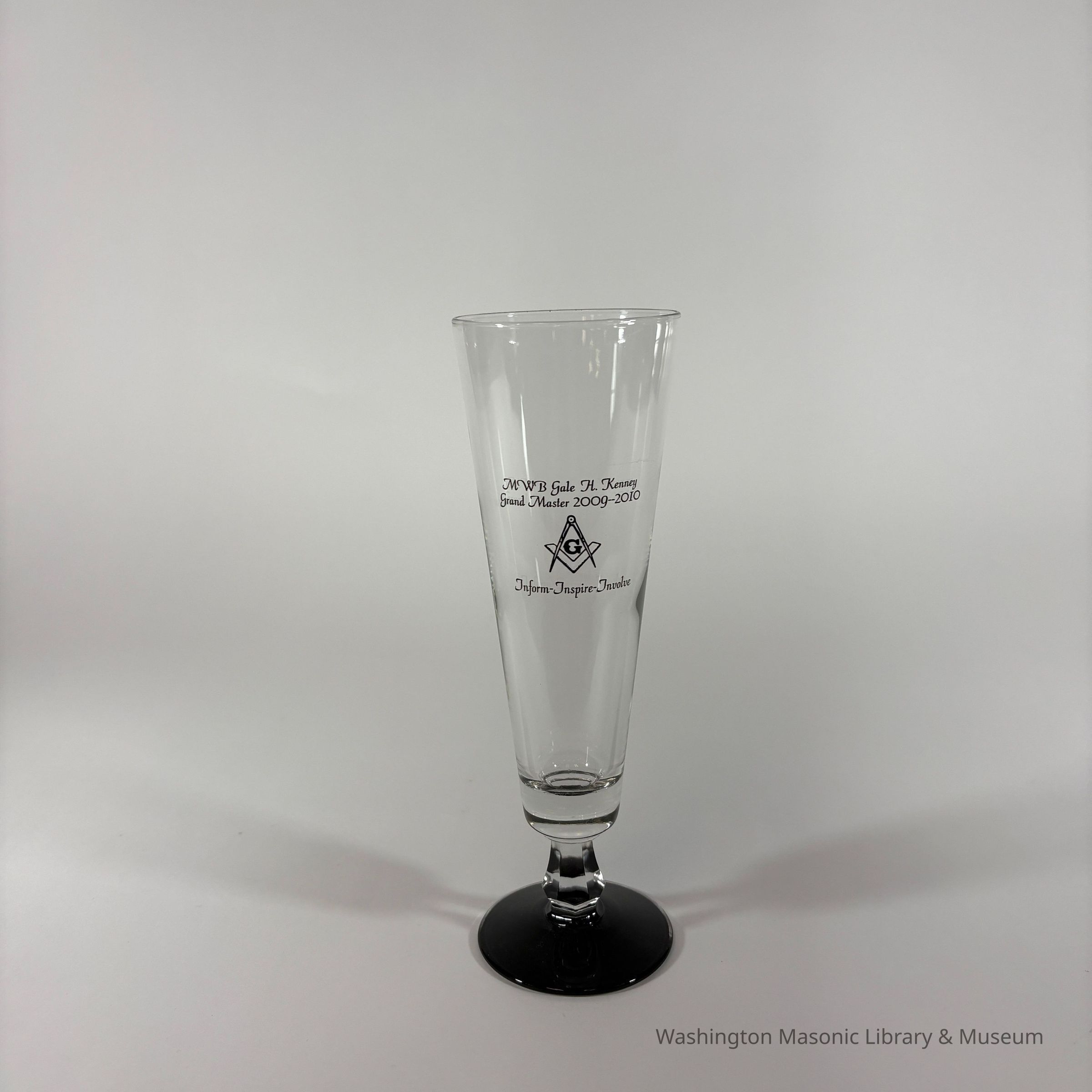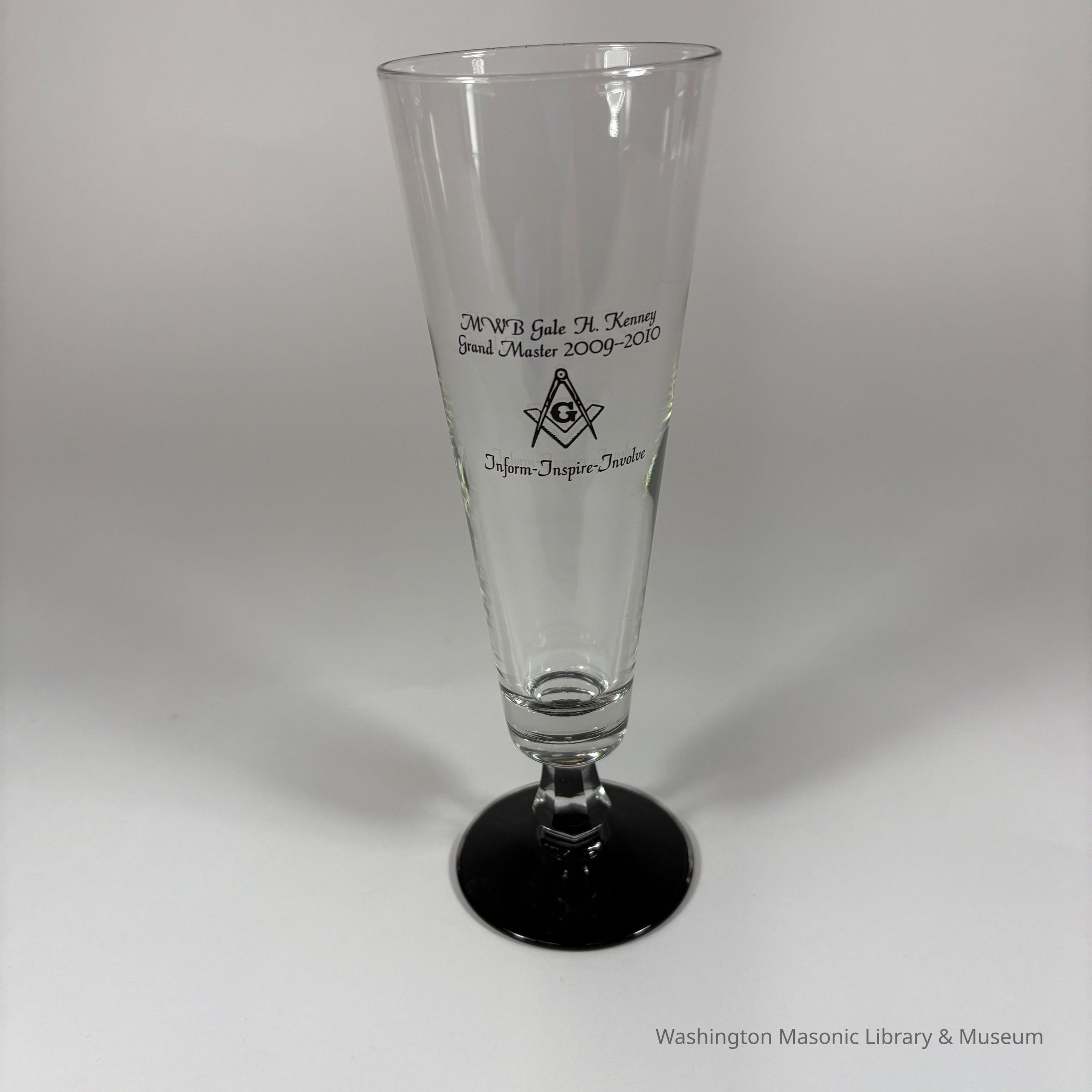 Glass: Clear with black stem. "MWB Gale H. Kenney/Grand Master 2009-2010/Inform-Inspire-Involve" (2010)Collection