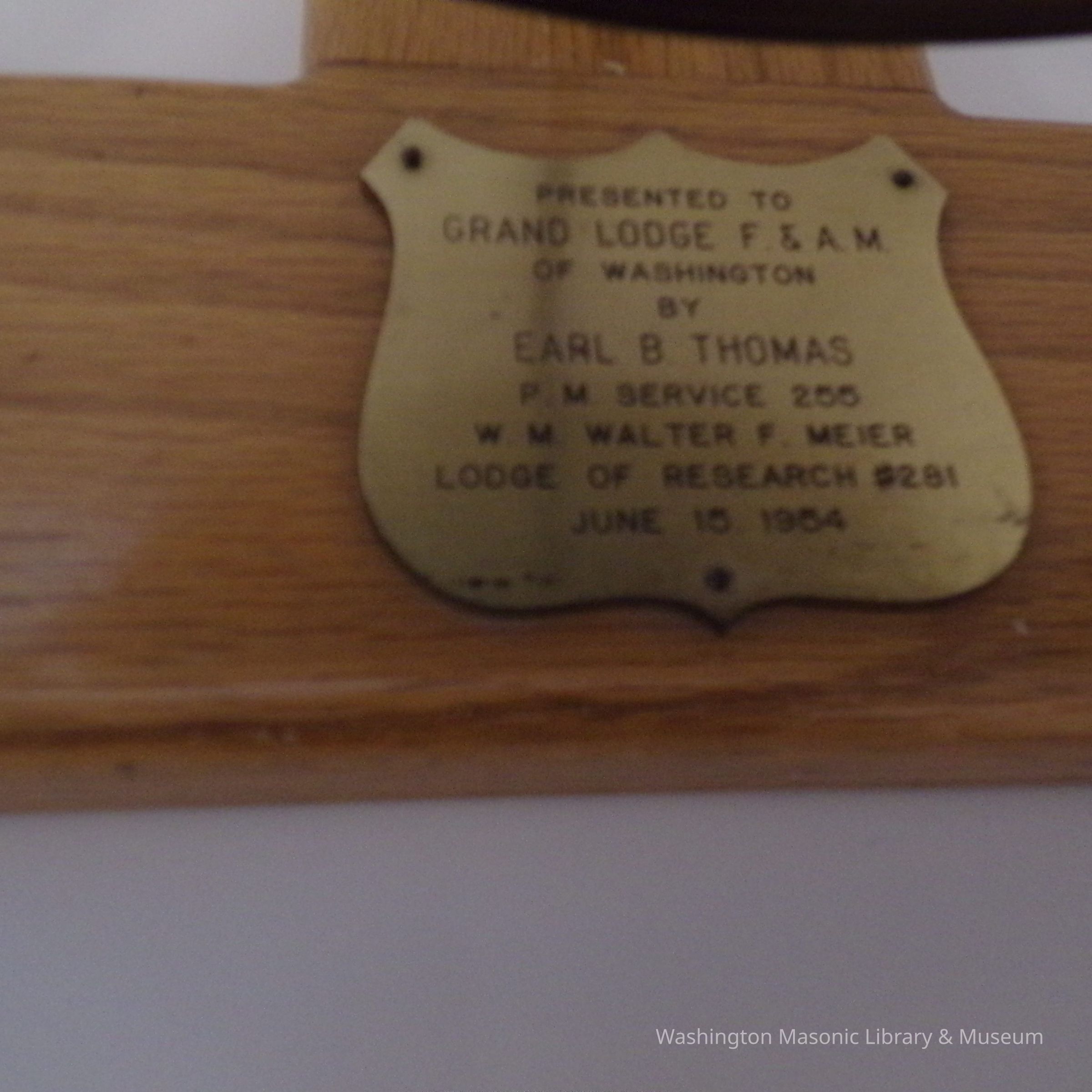 Gong: Presented to Grand Lodge of Washington by Earl B. ThomasEntry/Object ID