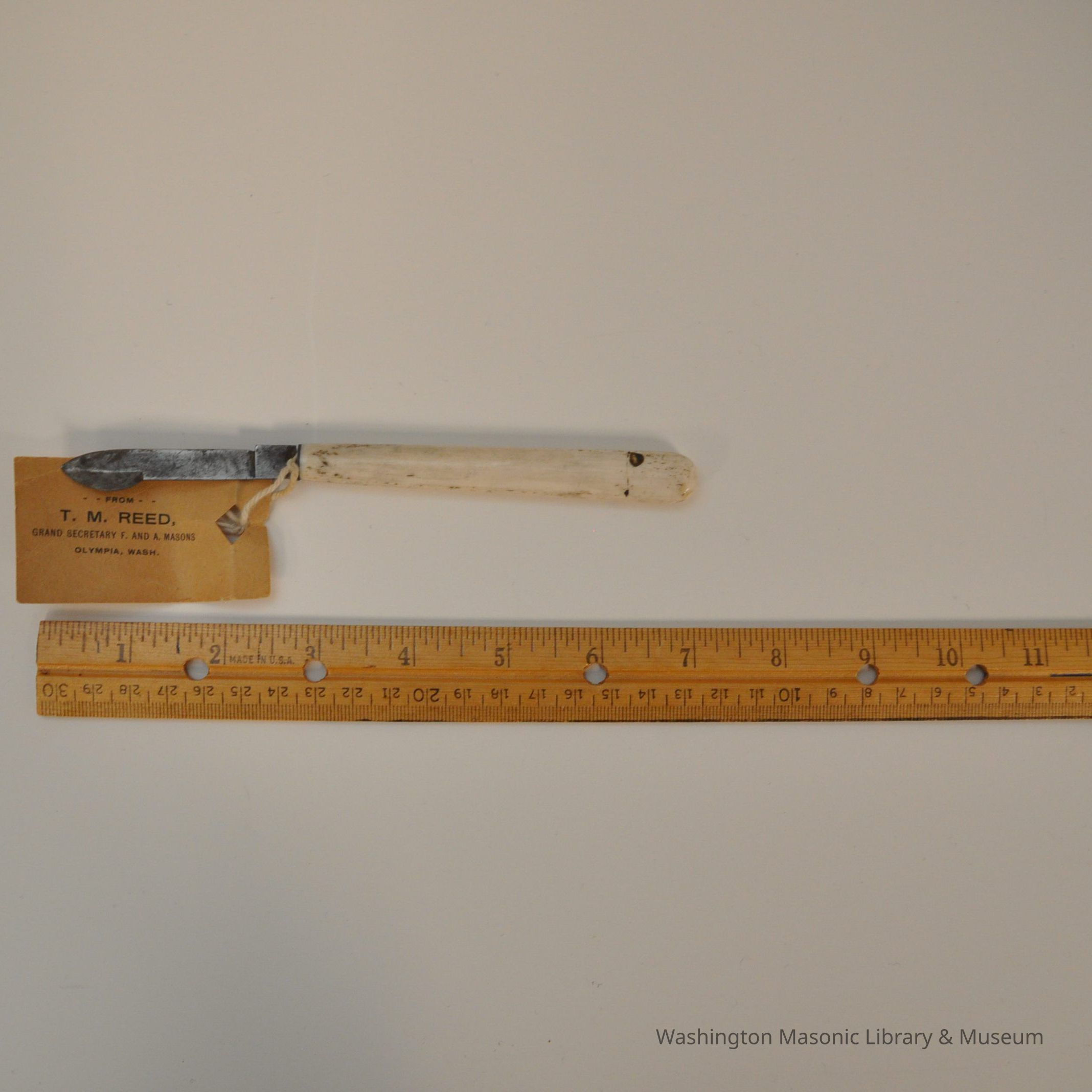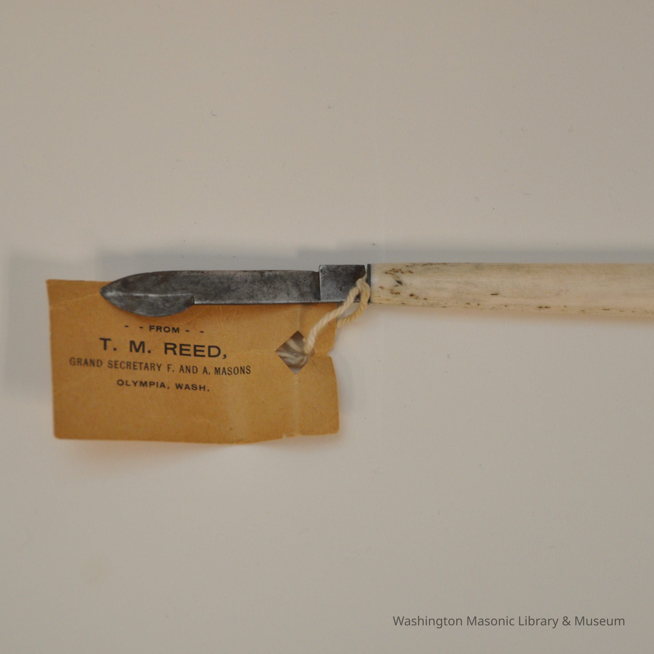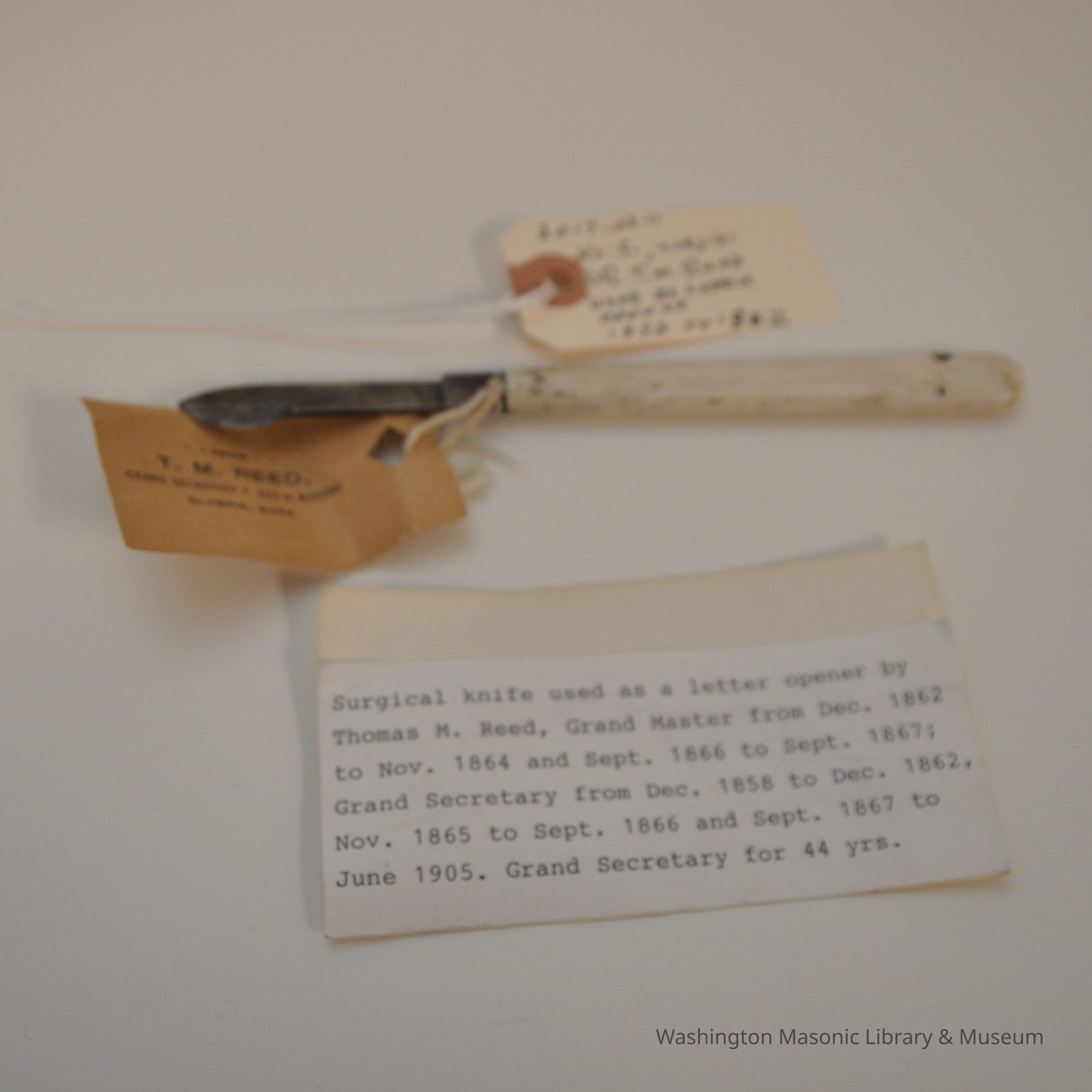 Knife: surgical knife used as a letter opener by Dr. Tim Reed, Grand Secretary for 44 years and also grand master. (Years of leadership: 1864-1905)Entry/Object ID