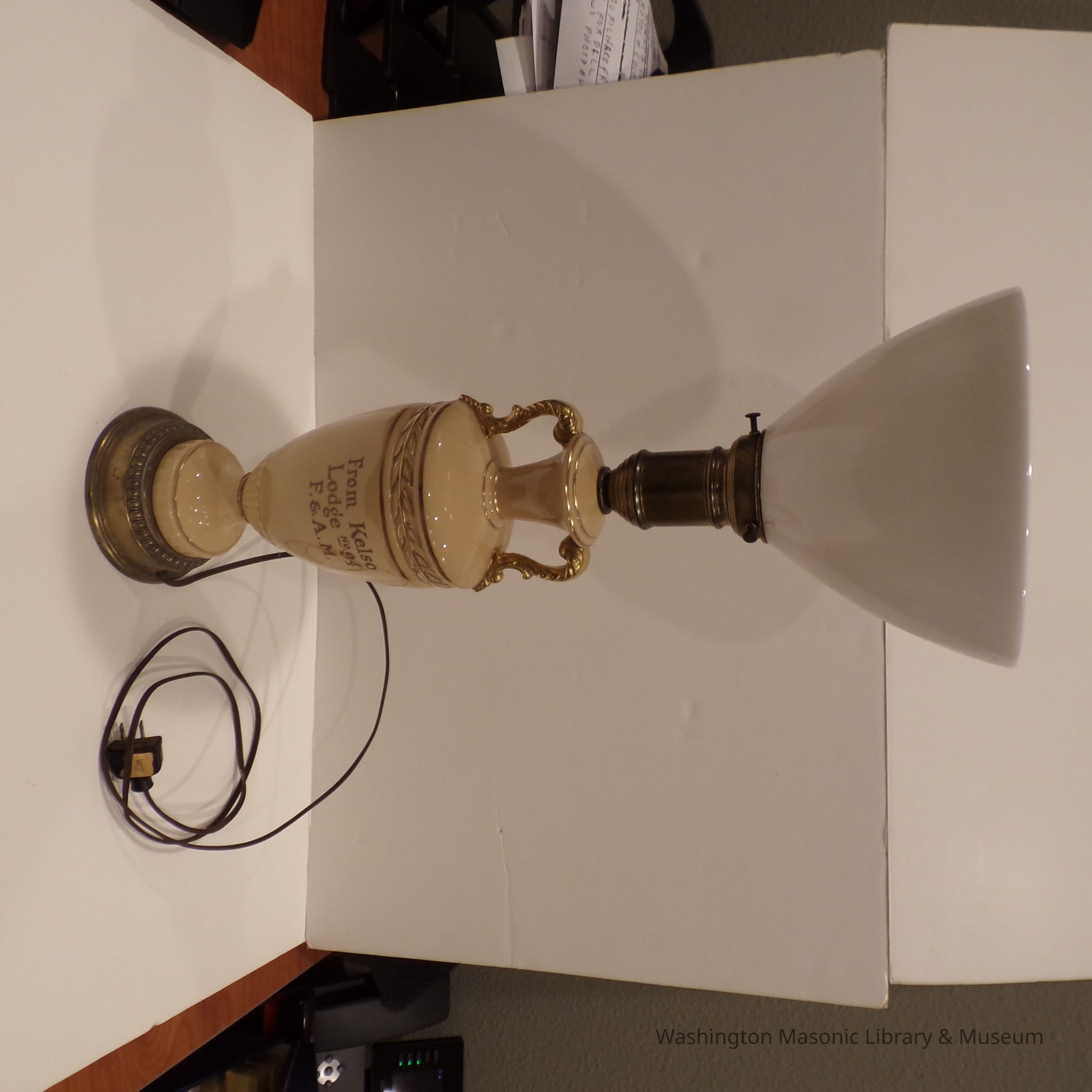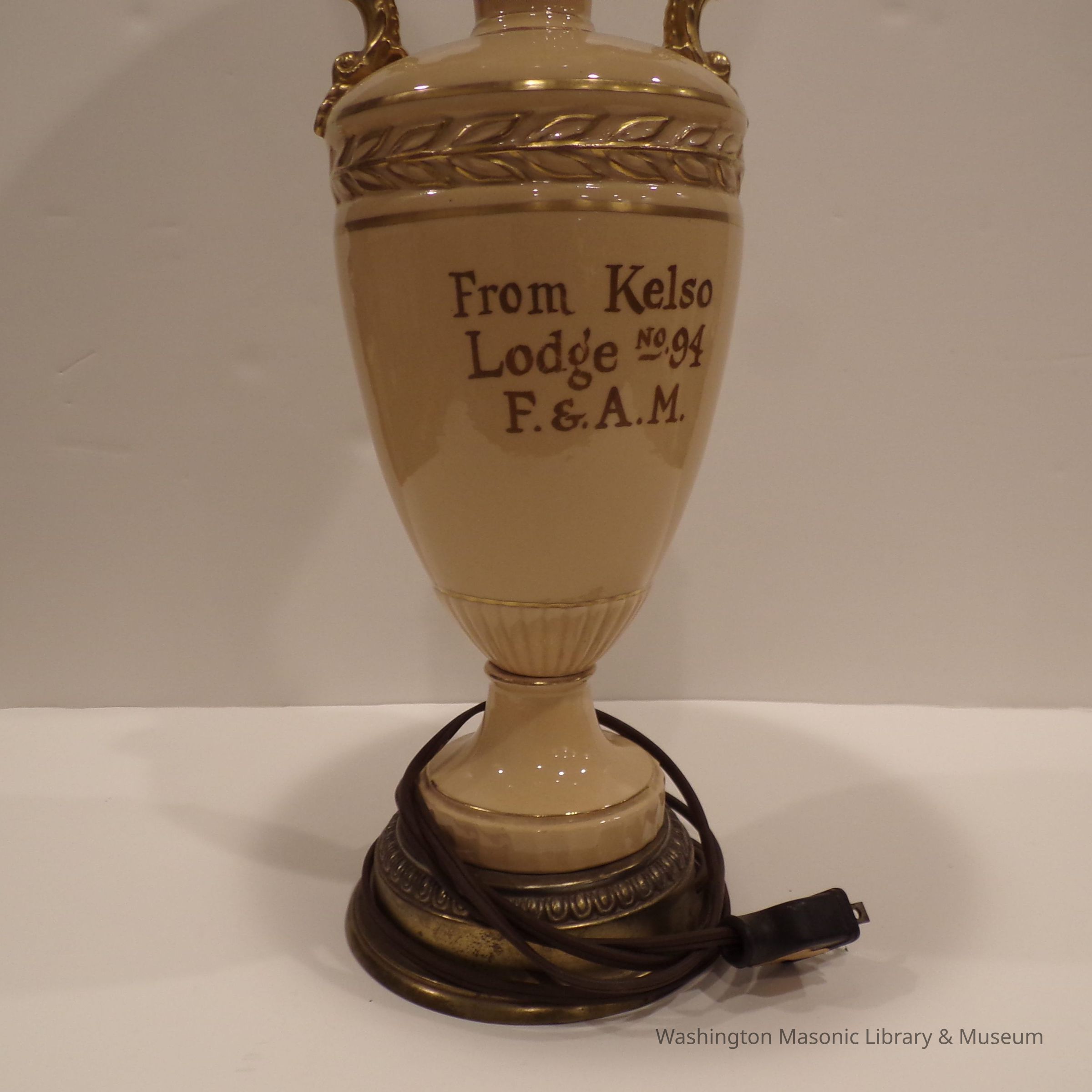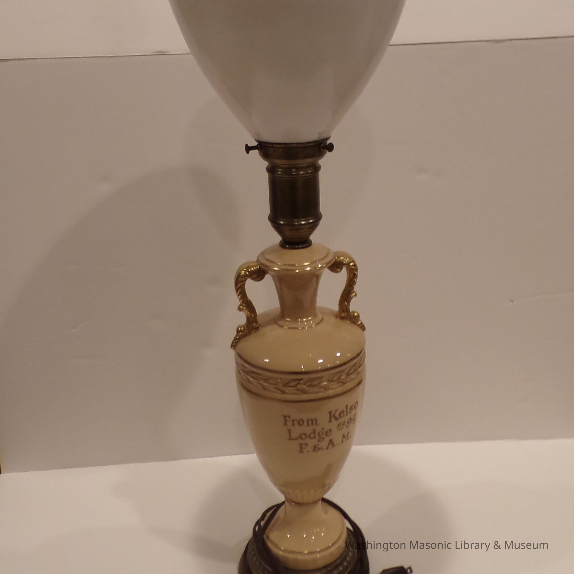 Lamp: Tan and gold. "From Kelso Lodge No. 94, F&AM."Entry/Object ID