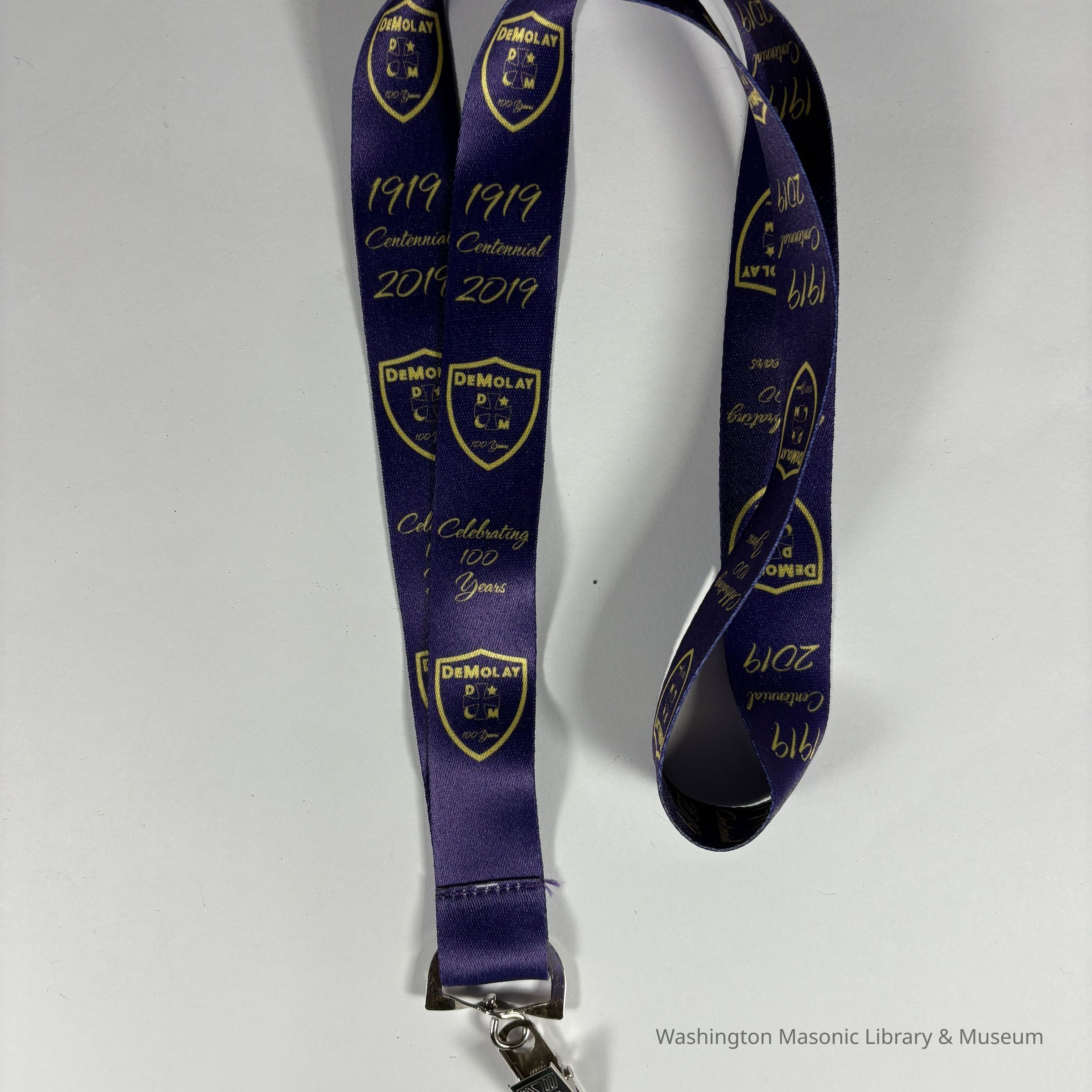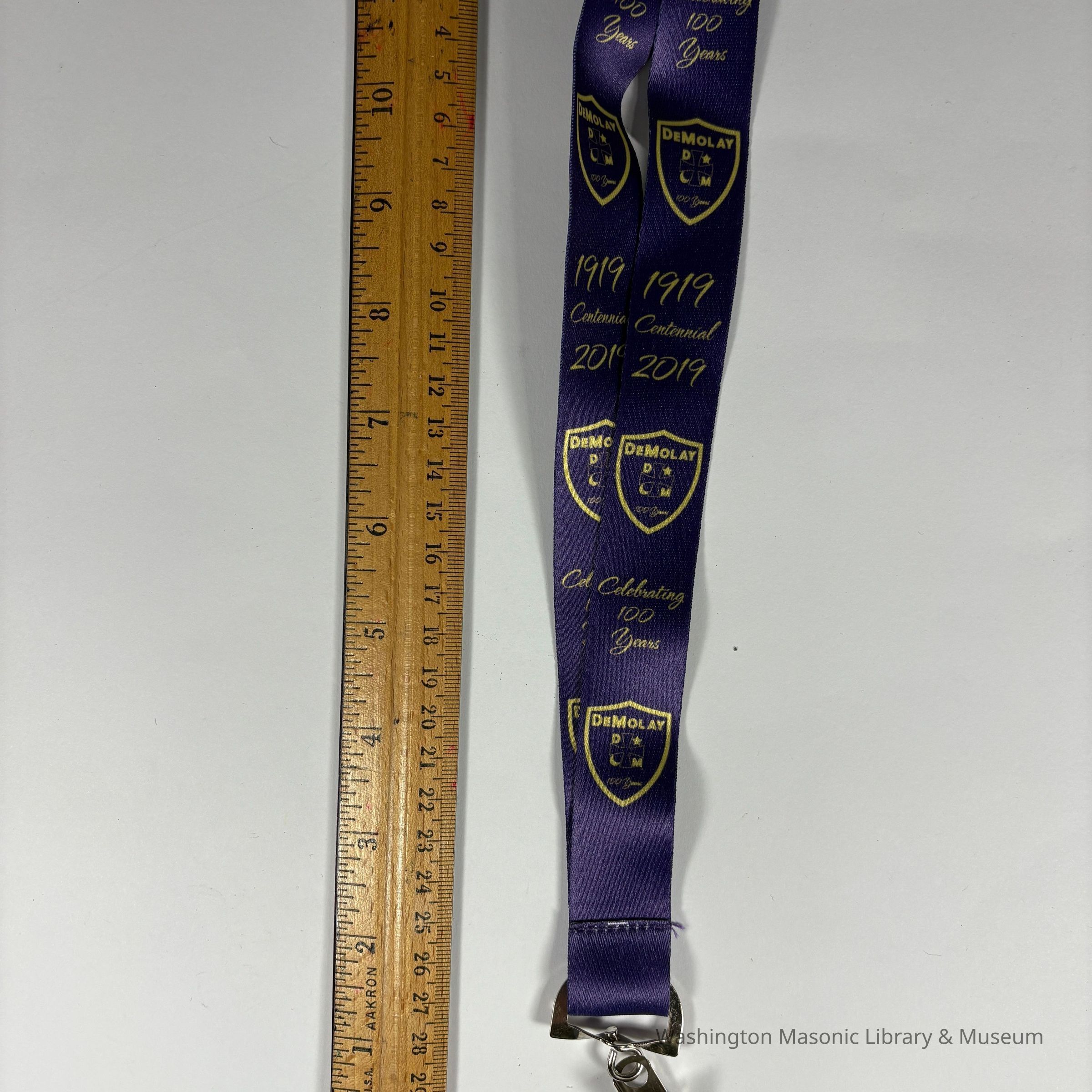 Lanyard: Purple and Yellow. "Celebrating 100 Years/ DeMolay/1919-2019" With Demolay crest. (2019)Collection