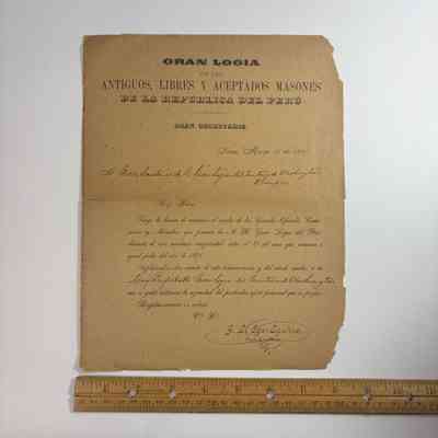 Letter: Correspondence from the Grand Lodge of Peru to the Grand Lodge of the Territory of Washington (1889).Entry/Object ID