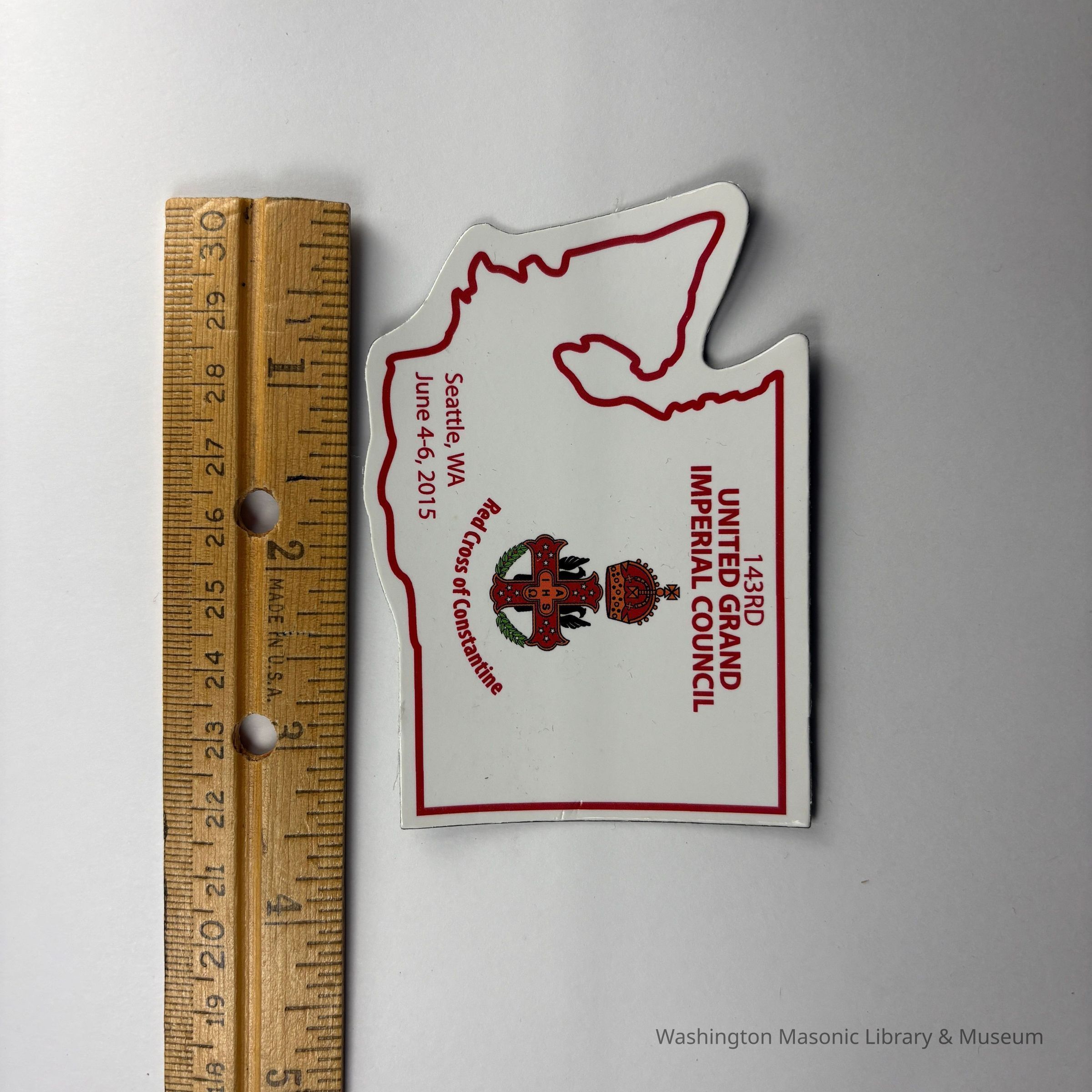 Magnet: White with Red detailing. In the shape of Washington State. "143rd United Grand Imperial Council/Red Cross of Constantine/Seattle, WA, June 4-6, 2015"Collection
