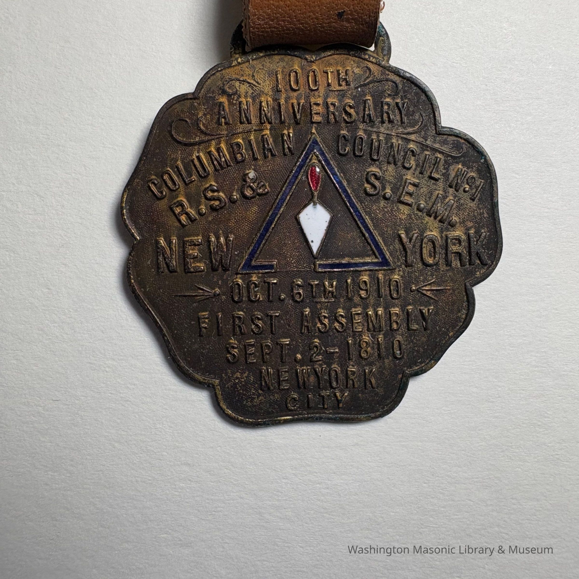 Medallion: 100th Anniverary of Columbian Council No. 1, R.S. & S.E.M, New York (1910)Entry/Object ID