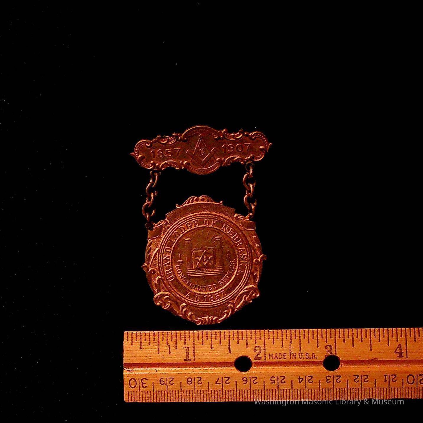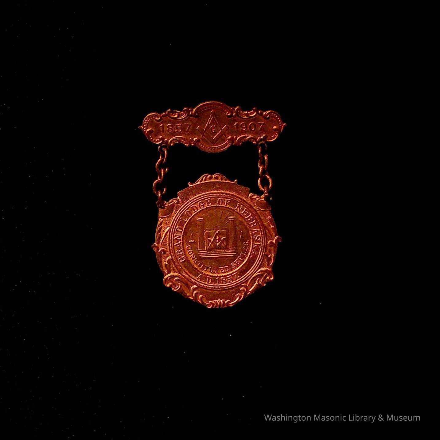 On Front: " 1857-1907, Grand Lodge of Nebraska A.D. 1857, Constituted Sep 23"