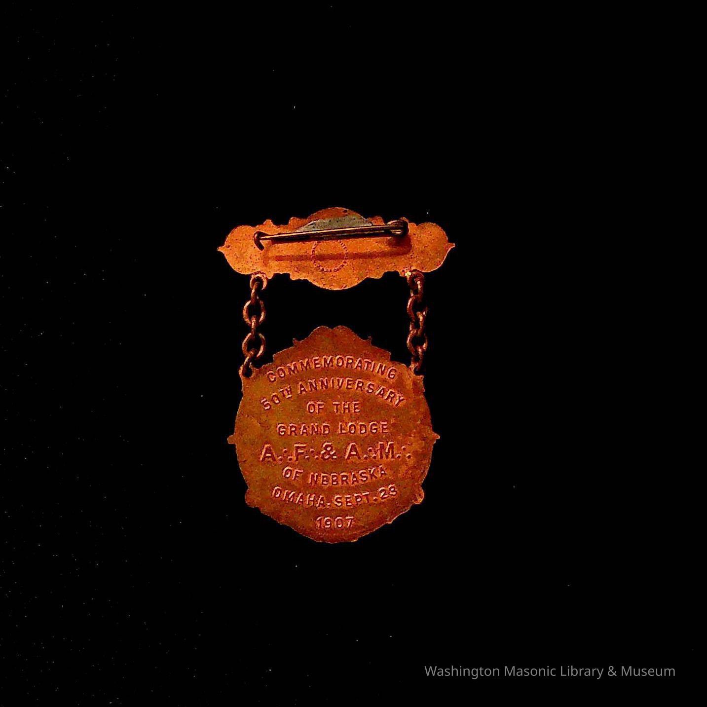 On Back: "Commemorating 50th Anniversary of the Grand Lodge A.F. &A.M of Nebraska, Omaha, Sept. 23, 1907"Collection