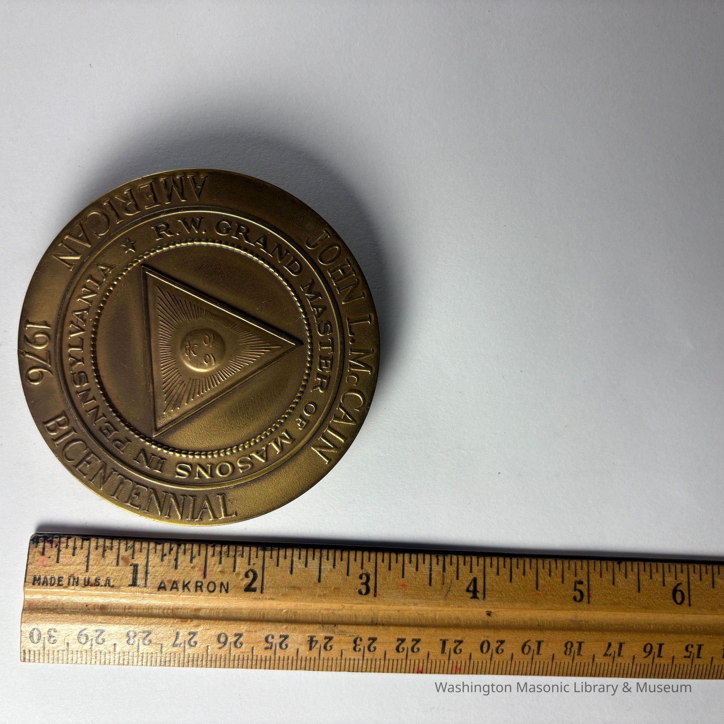 Back Side: Triangle with sun inside. "John L. McCain/American 1976 Bicentennial/R.W. Grand Master of Masons in Pennsylvania"Collection