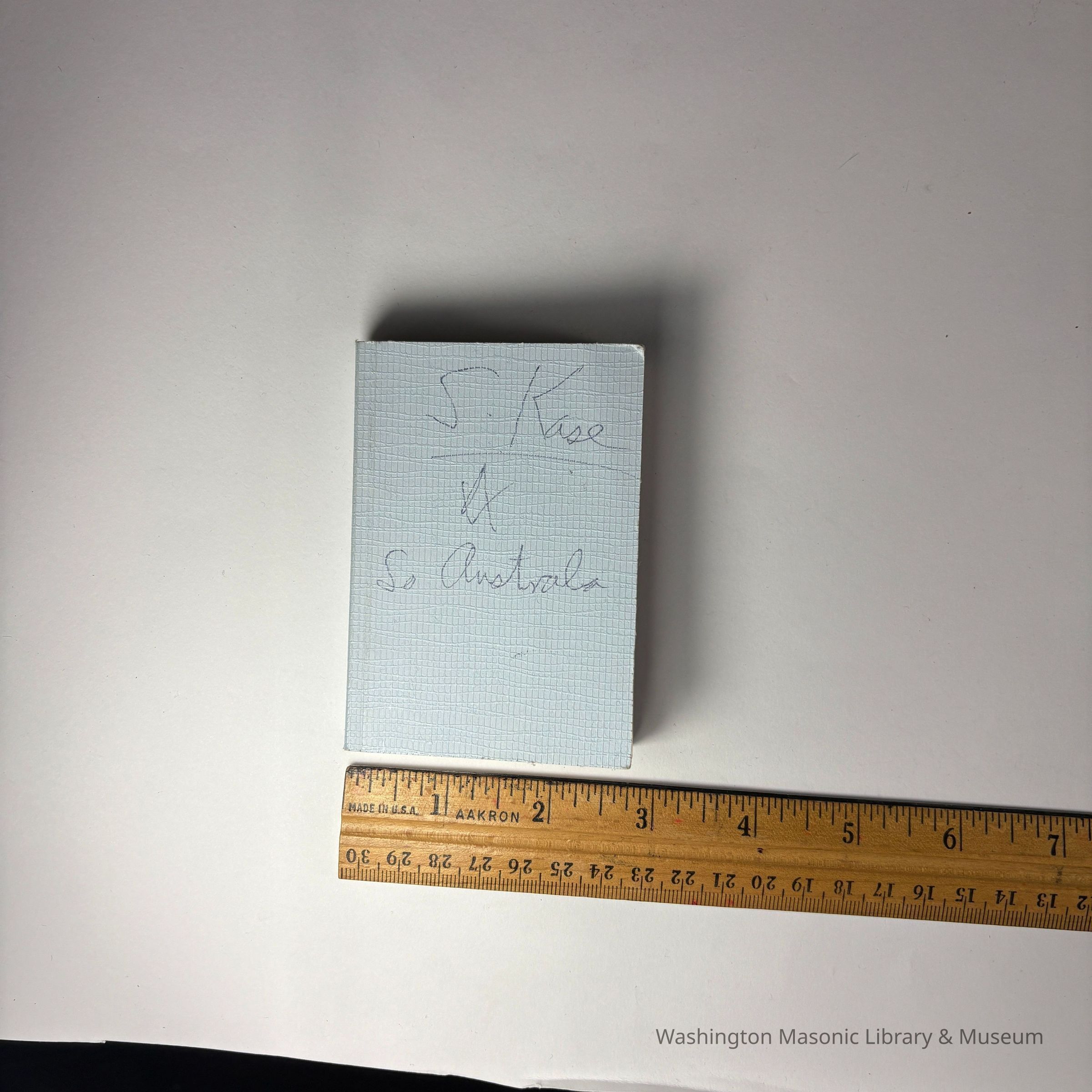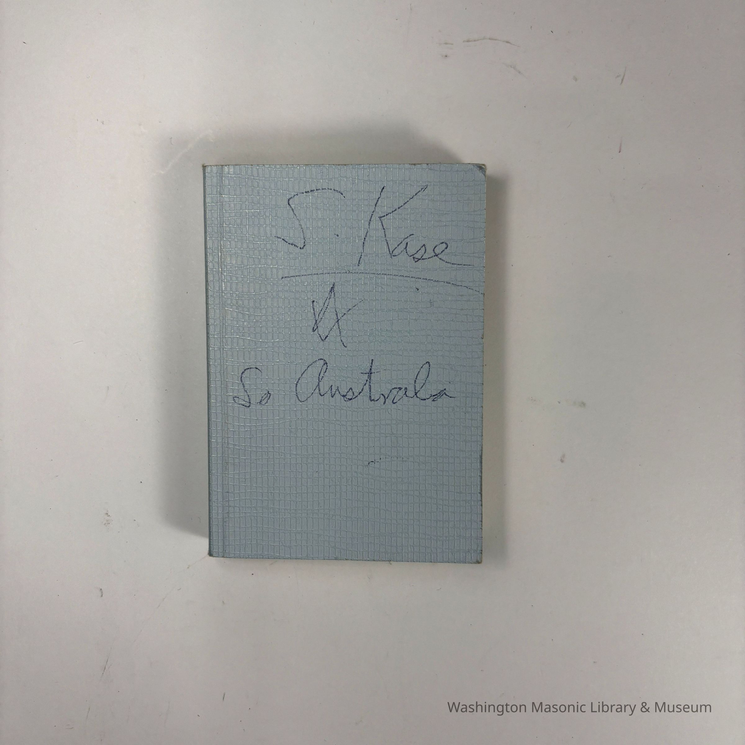 Monitor: Blue, with the writing "S. Kase/So Australia" on the cover. "The Ritual of the Three Degrees of Craft Masonry and Investiture Addresses" The Grand Lodge of Antient Free and Accepted Masons of South Australia, Adelaide (1978)