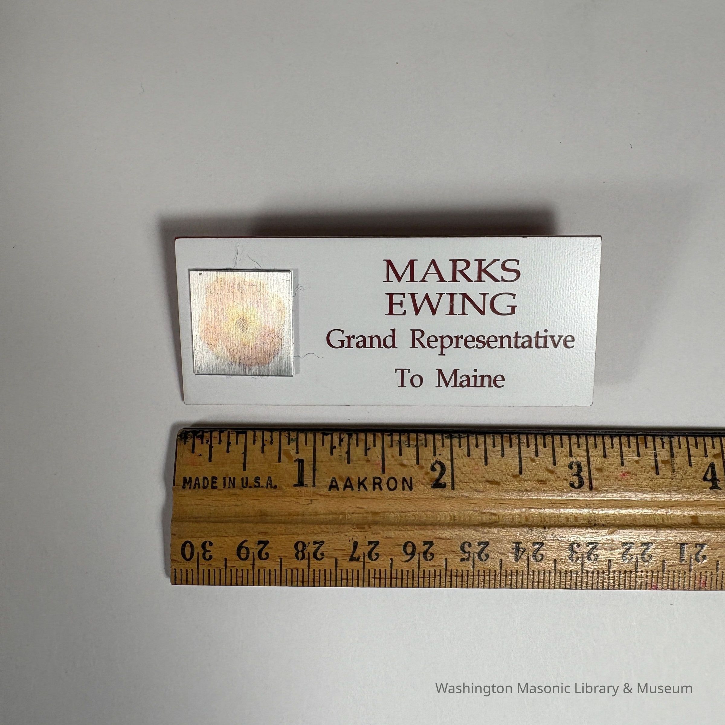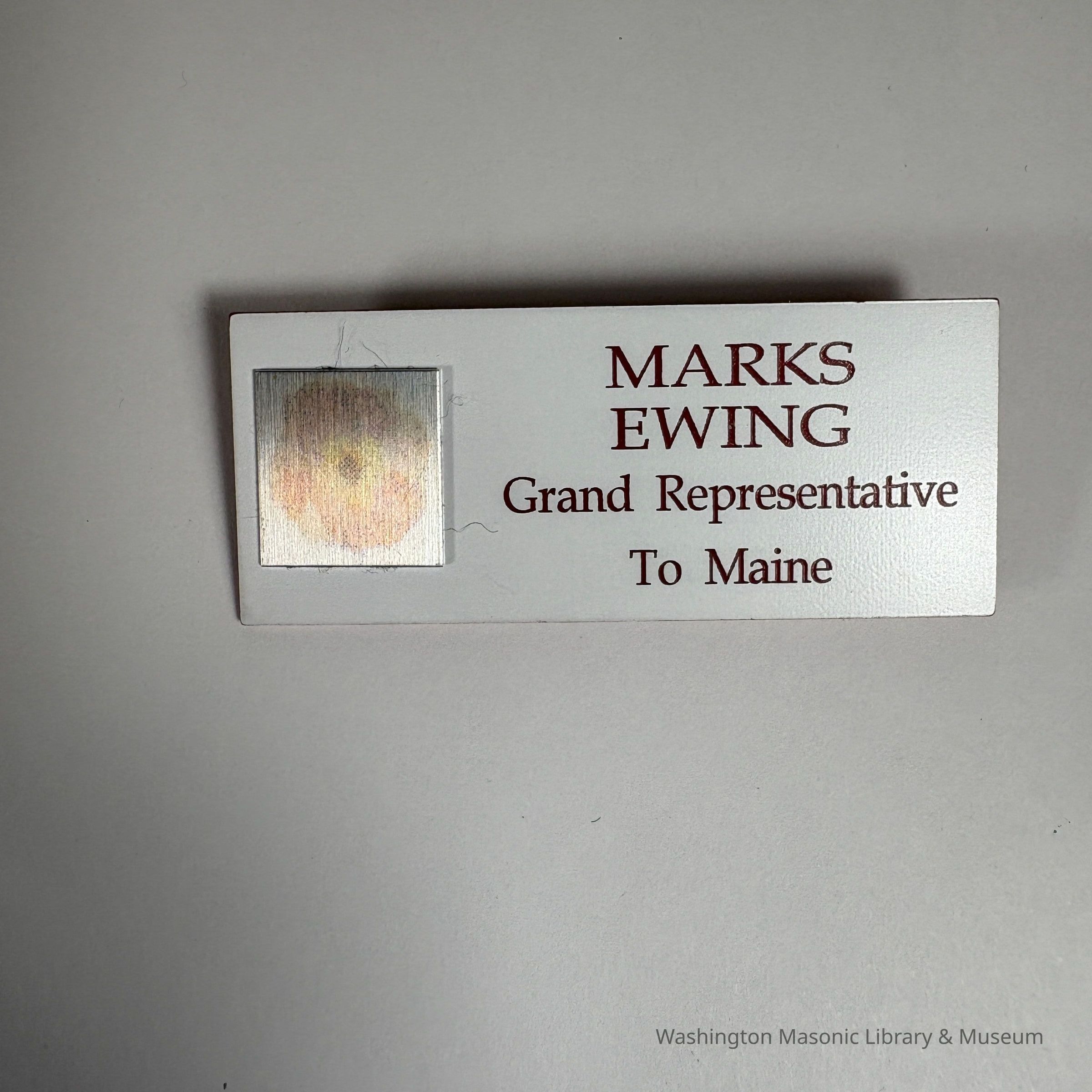 Name Tag: "Marks Ewing/Grand Representative to Maine" Late 20th Century. Clip on the back.Entry/Object ID